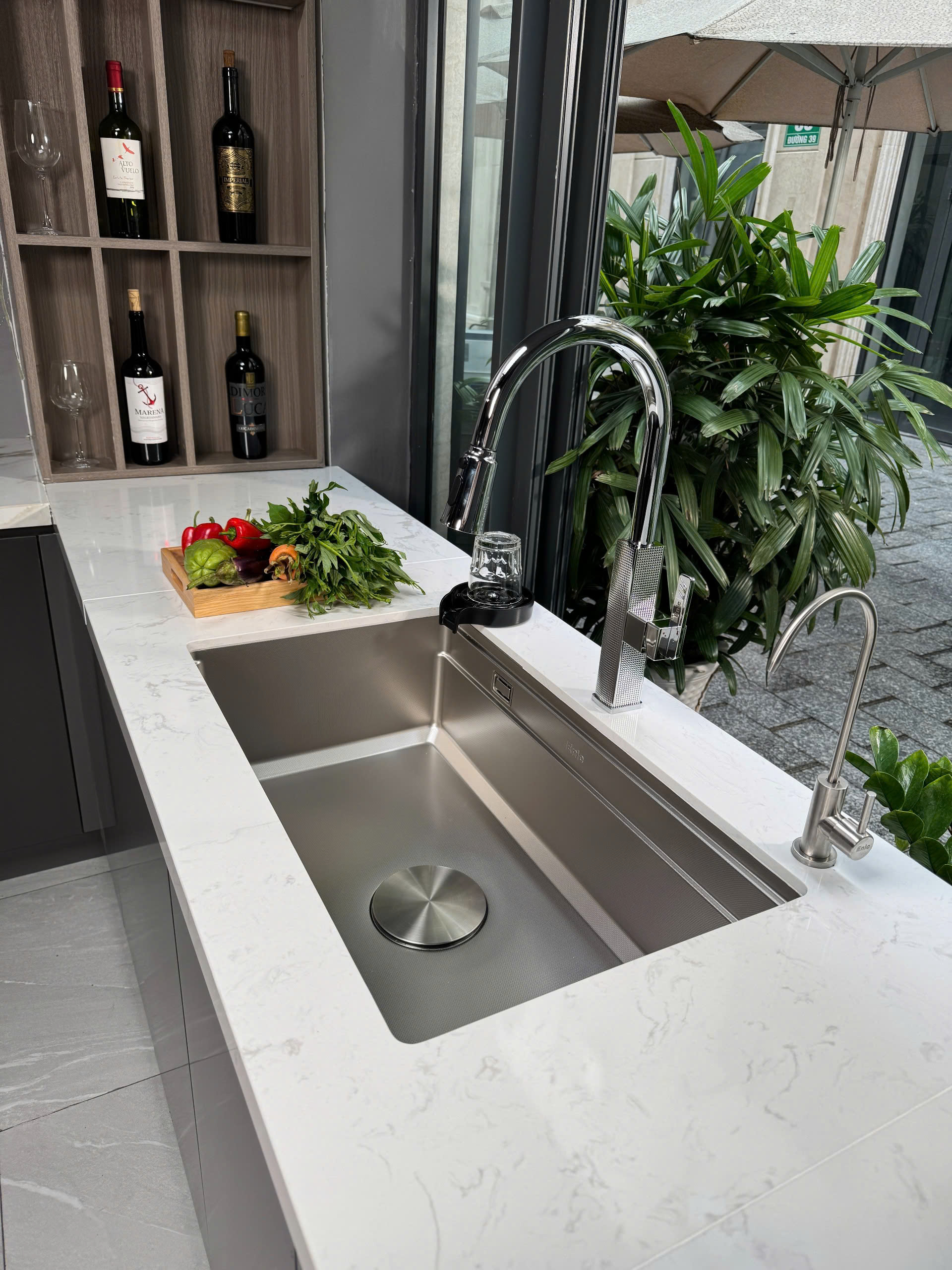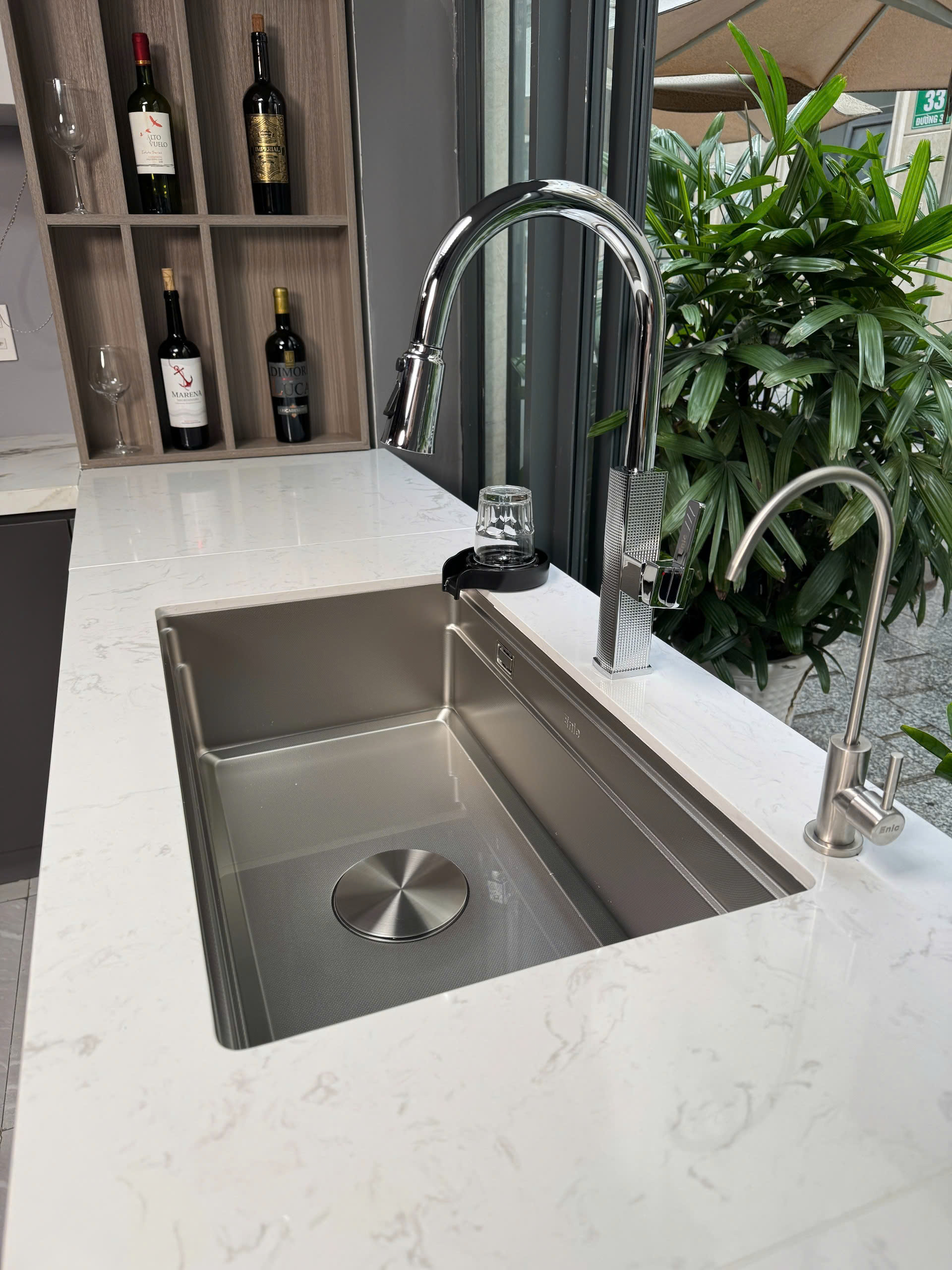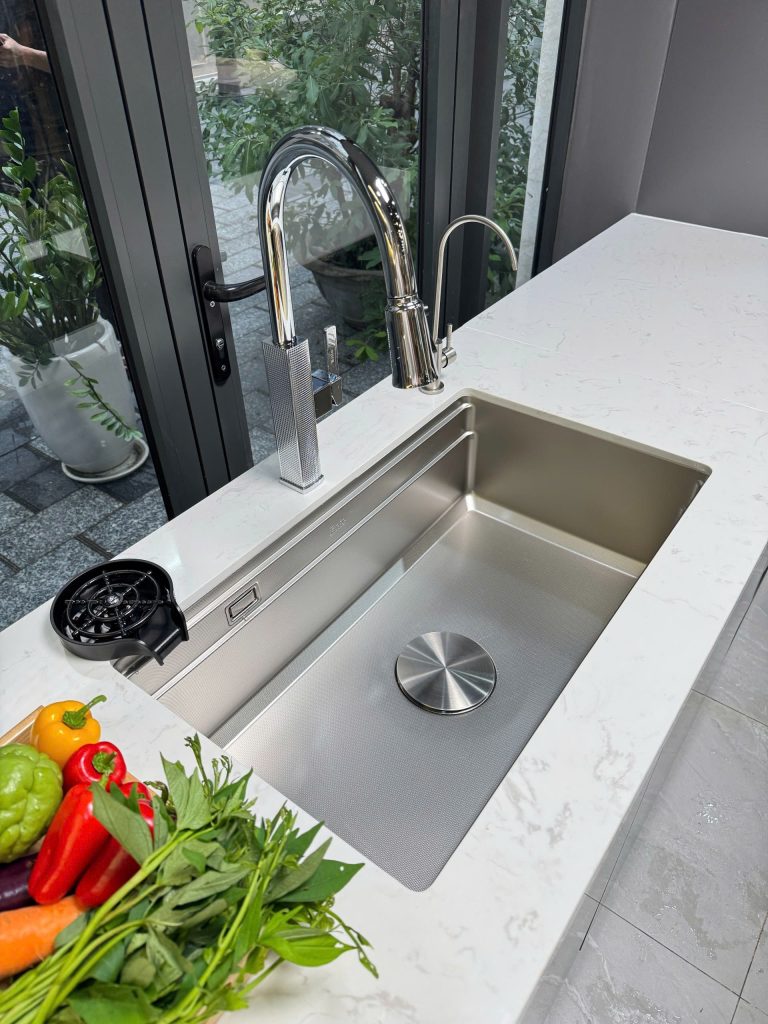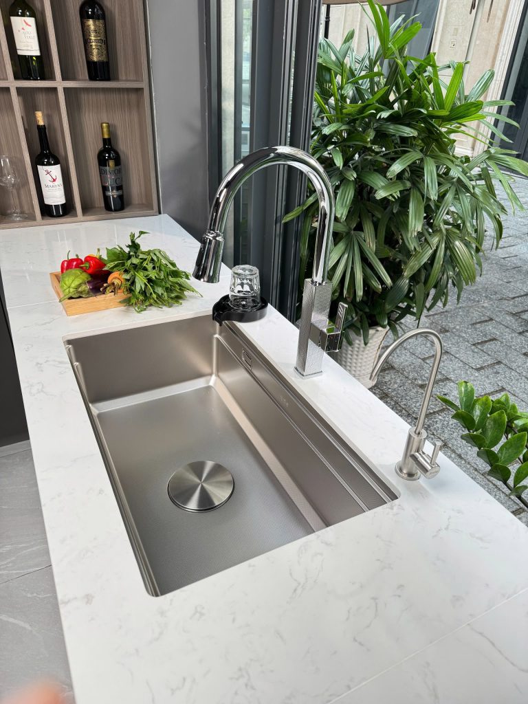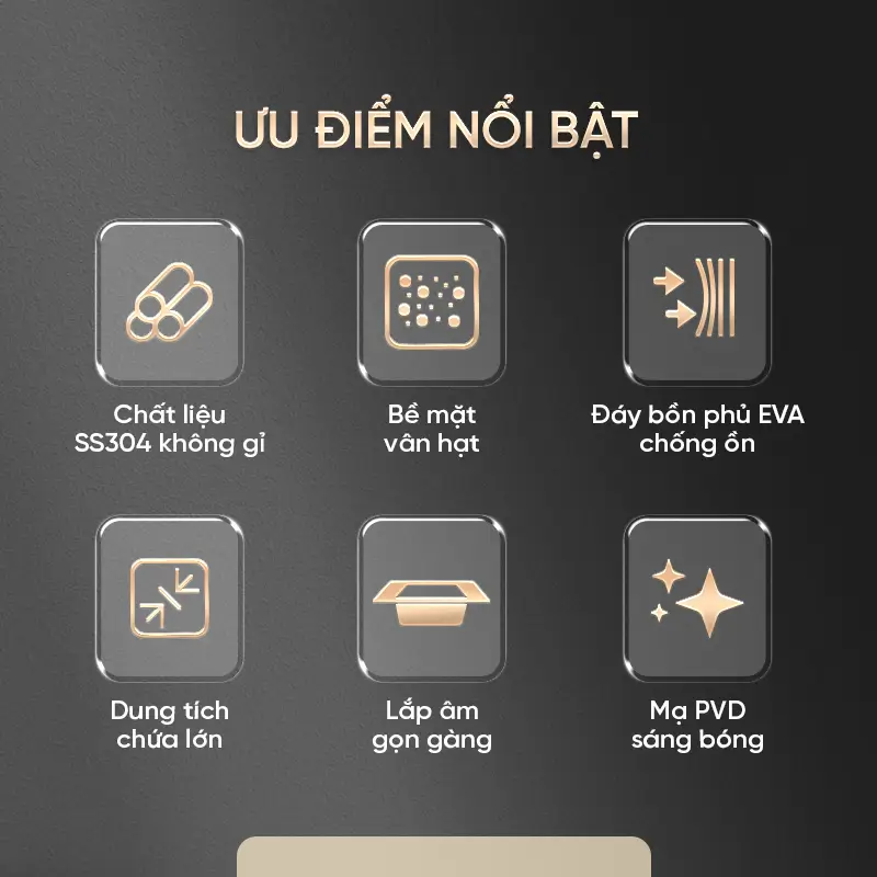 e này mạ pvd khá đeppj. khá cứng cáp, ai mua nên cân nhắc quất thêm cái vòi enic nx cho nó đồng bộ chứ nhà mik đây lắp vòi inox hãng khá nó bị lặc quẻ :