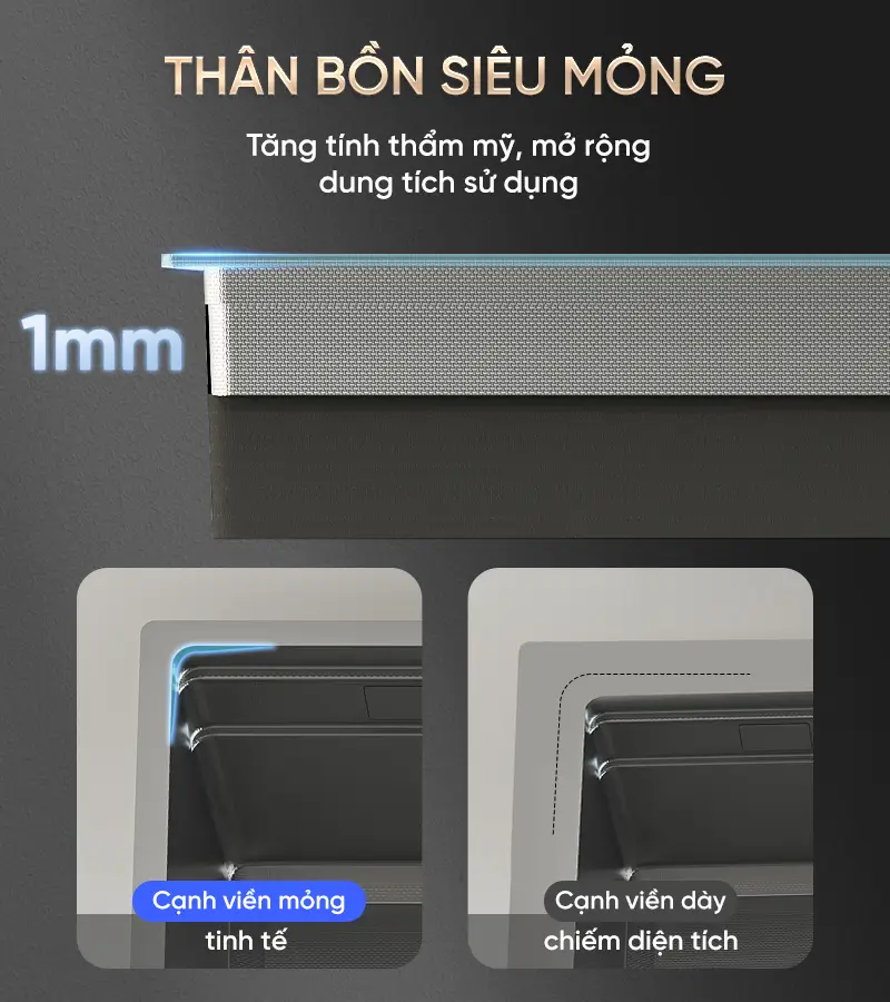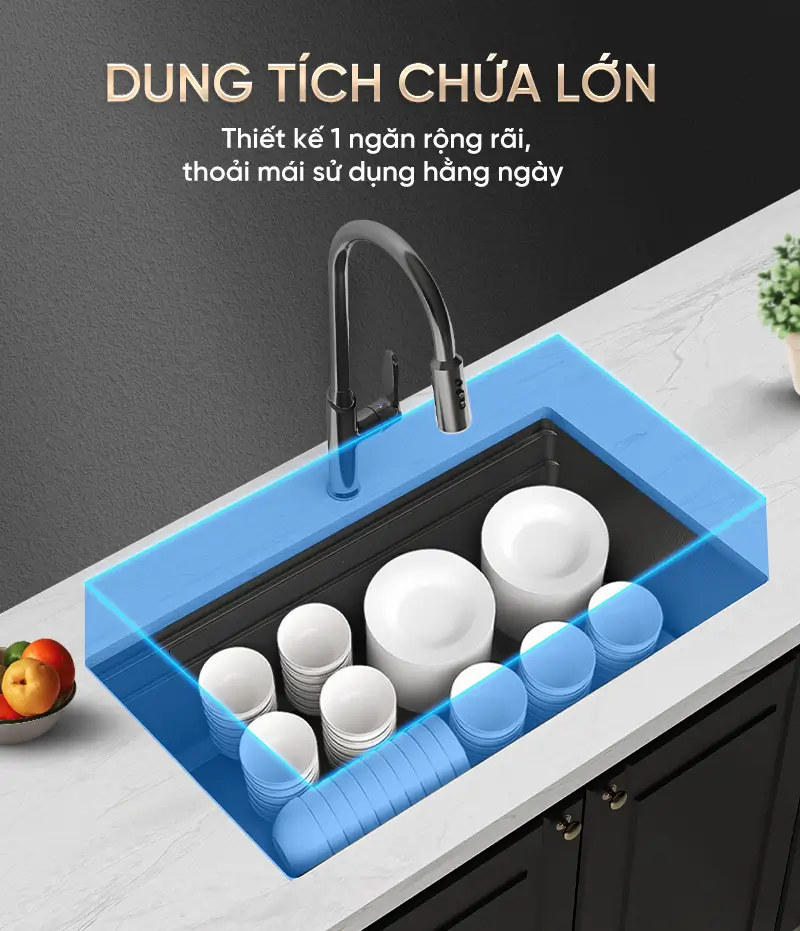 bồn rộng nha, khá sâu, thao tác các kiểu thoải mái