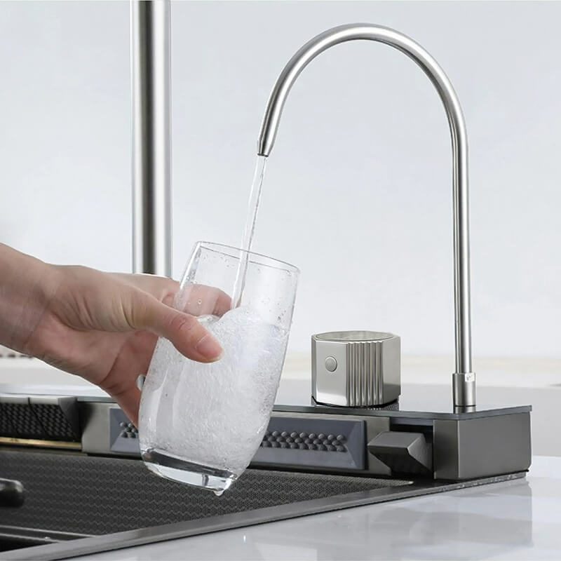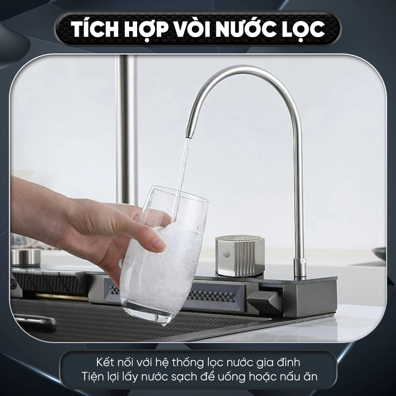 Vòi nước uống gắn với bồn lun nên cực kì tiện, lấy nước nấu ăn các kiểu cũng hợp lí phết