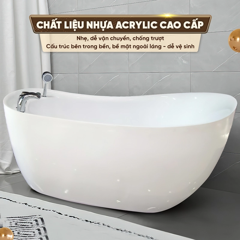 Được biết bồn này làm từ nhựa acrylíc, đây là vật liệu nhẹ nhưng chắc chắn và bền bỉ nên đã tin chọn.