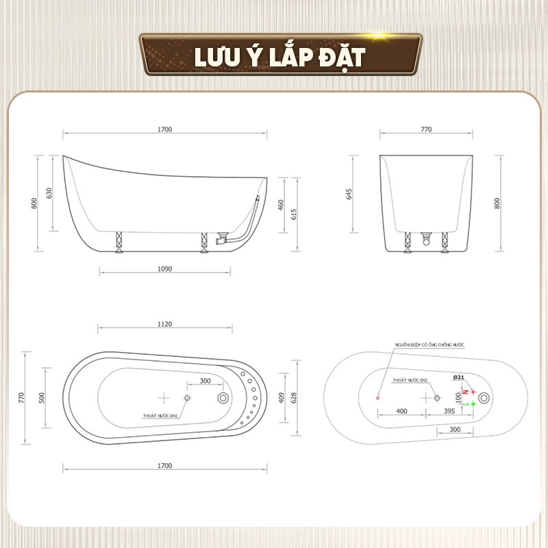 Đặc biệt, sản phẩm được trang bị Aptomat chống giật, nâng cao mức độ an toàn khi sử dụng. Với công suất định mức 1050W, tổng công suất máy bơm nước 2250W và bơm khí 300W, bồn tắm massage Enic M01 đảm bảo hoạt động mạnh mẽ và bền bỉ, phù hợp cho mọi nhu cầu thư giãn.