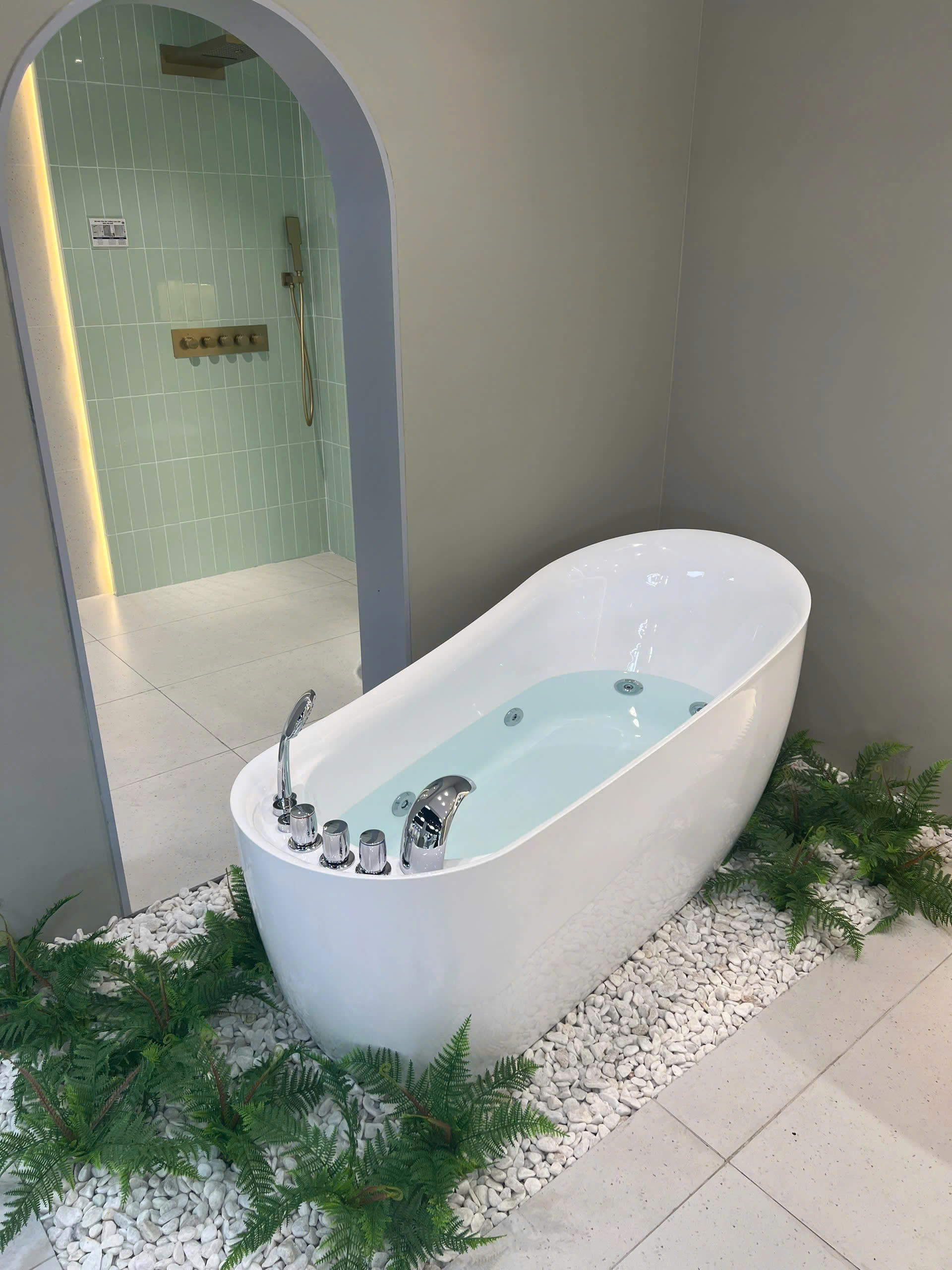 Kích thước của bồn tắm rộng rãi, cho phép tôi thoải mái di chuyển và nằm thoải mái