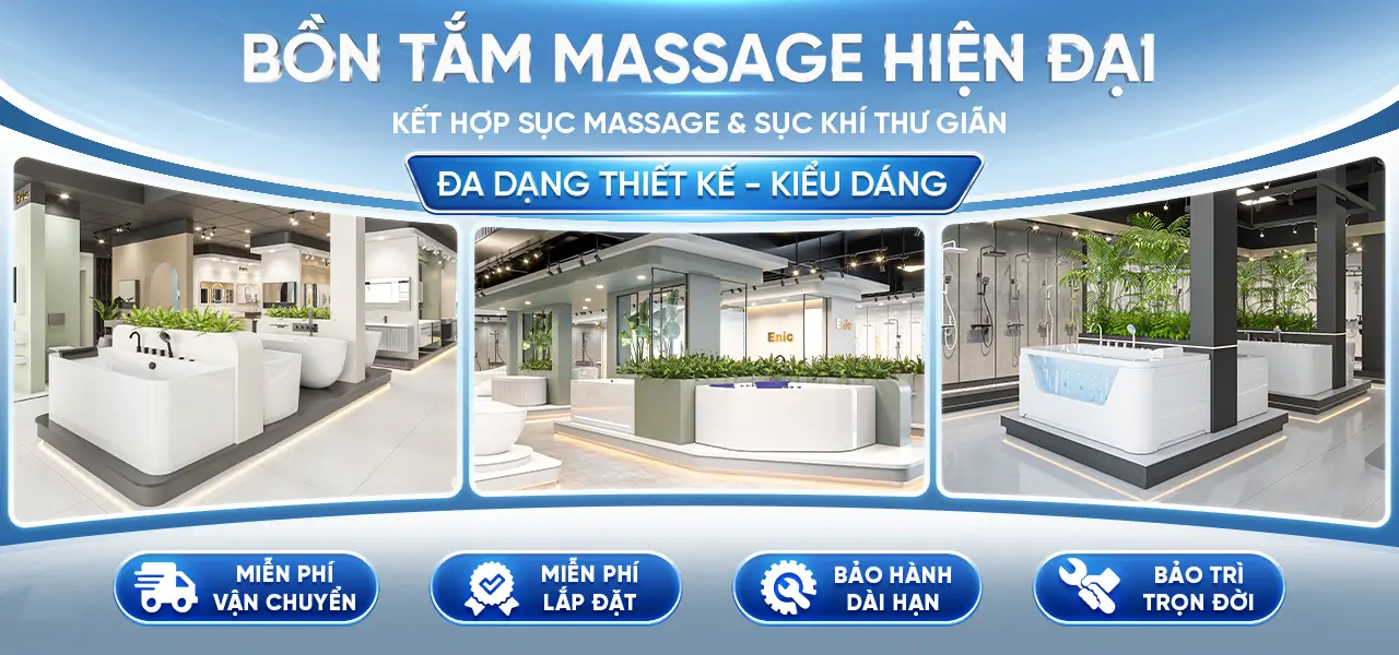 Cuối cùng, bồn tắm massage Enic được trang bị nhiều tính năng tiện ích. Hệ thống massage đa dạng với nhiều chế độ khác nhau như massage sục khí, tạo sóng, giúp bạn thư giãn cơ bắp, giảm stress hiệu quả.