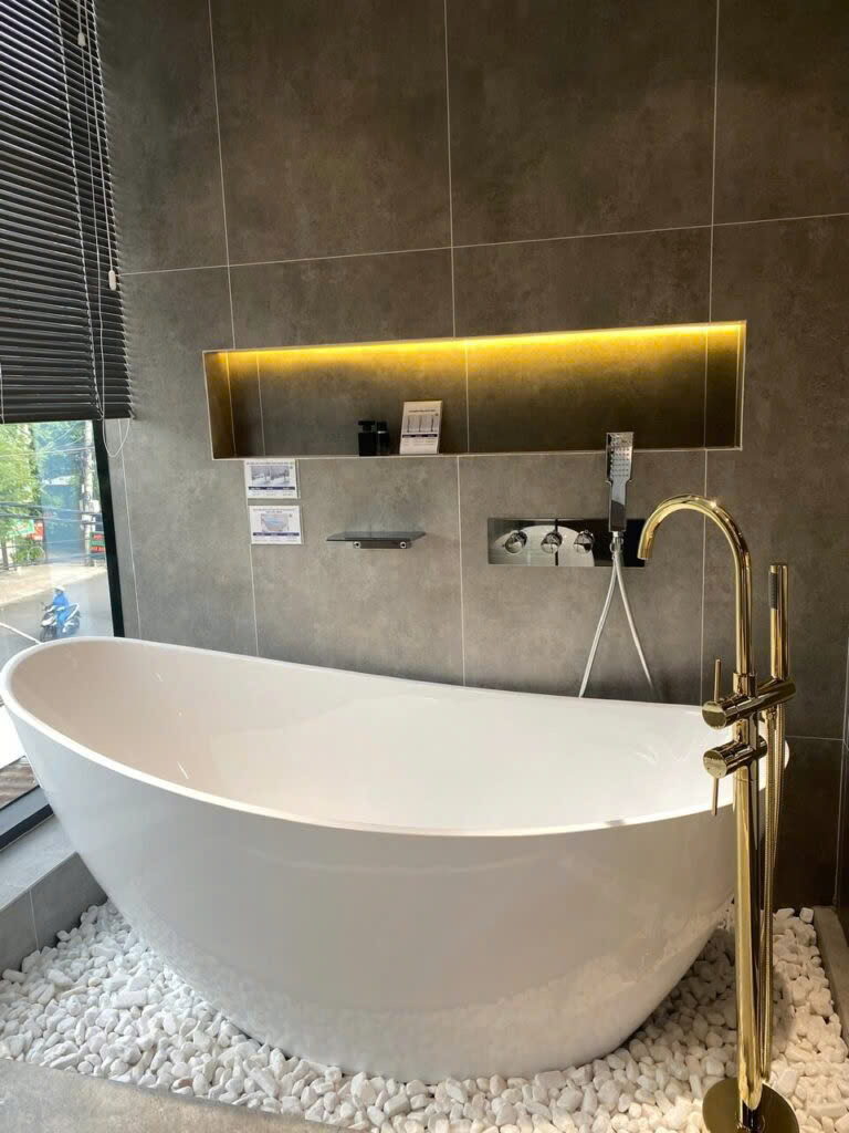 - Diện tích bồn tắm lớn: bạn có thể ngâm mình thoải mái, dễ dàng tắm toàn thân, thư giãn sau ngày dài