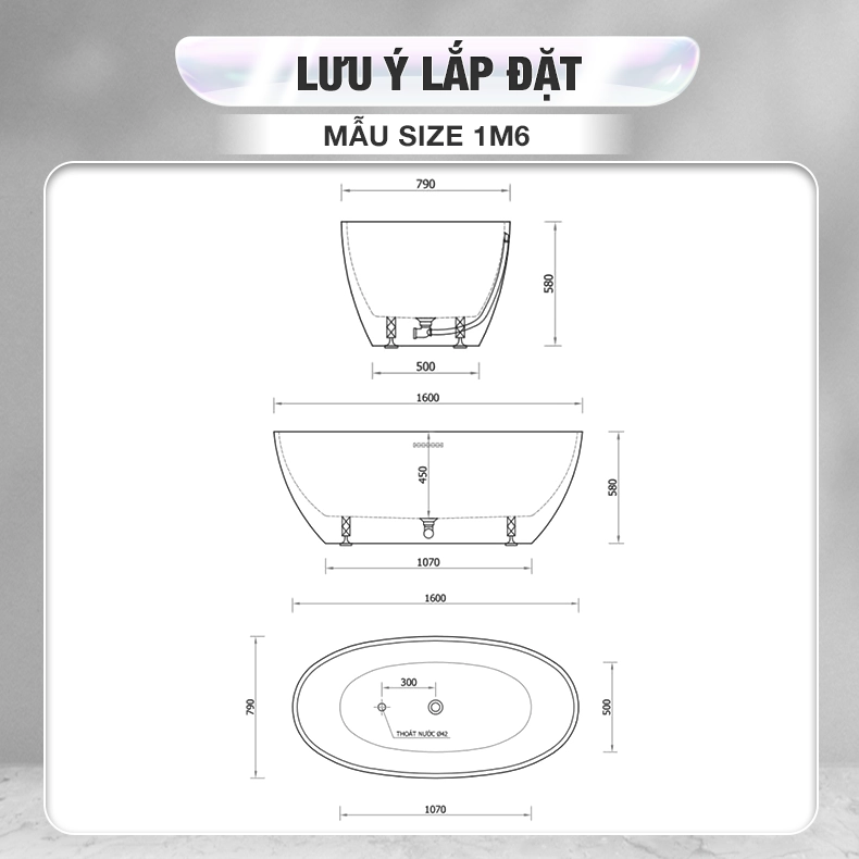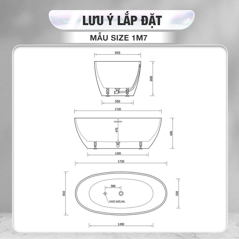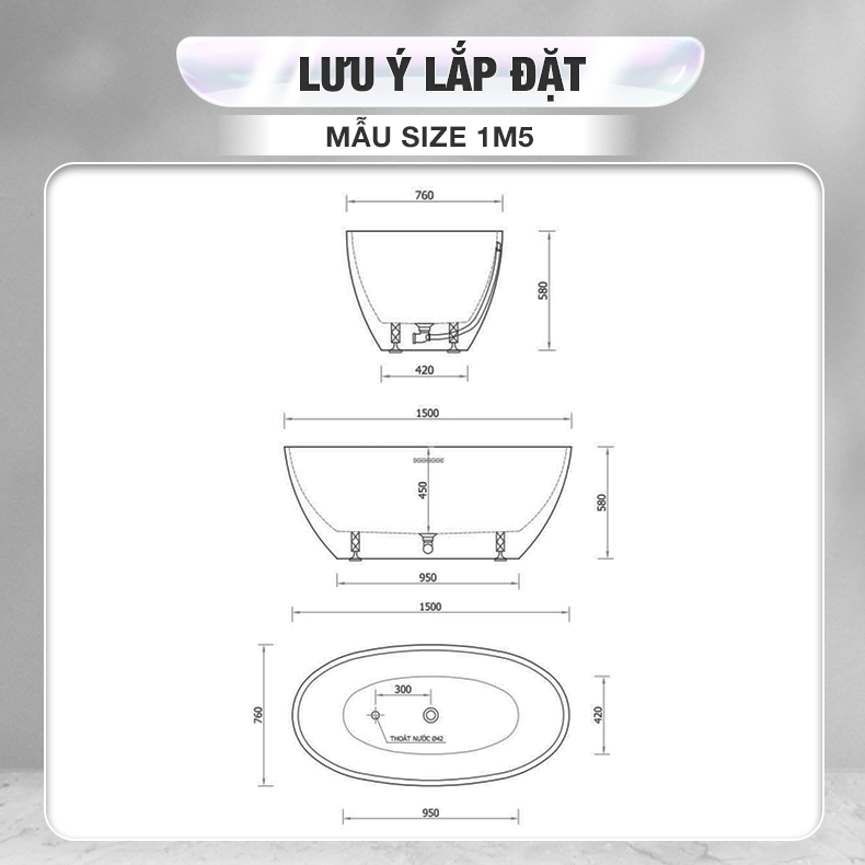 Bồn tắm Oval nhựa Acrylic Enic T01 1m5 – 1m7