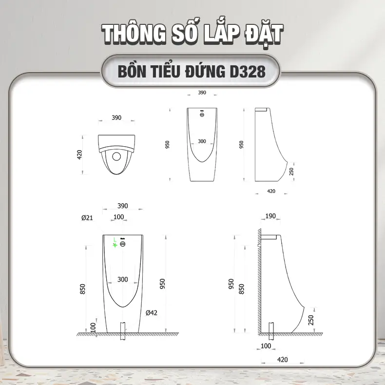 Bồn tiểu nam đứng Enic D328 được tích hợp công nghệ hiện đại, thông minh mang đến trải nghiệm mới mẻ, tiện nghi cho người tiêu dùng. Thiết kế của sản phẩm tinh tế, hiện đại cũng giúp không gian thêm phần sang trọng. Ngoài ra, giá thành hợp lý, phải chăng cũng là điều kiện thuận lợi để khách hàng có thể mua và trải nghiệm sản phẩm.