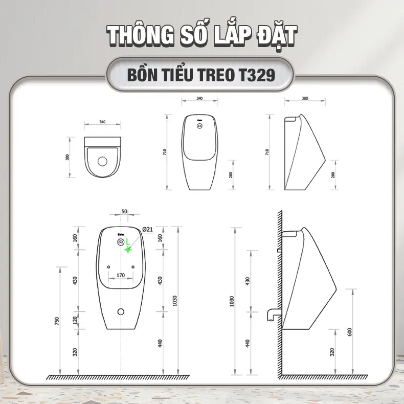 Bồn tiểu nam treo tường Enic T329