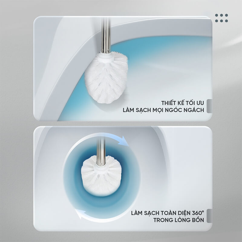 Làm sạch mọi ngóc ngách: Đầu chổi làm từ Nhựa ABS dẻo dai với các sợi lông chổi được bố trí khoa học, giúp len lỏi và làm sạch hiệu quả các khu vực khó tiếp cận như vành trong của bồn cầu.