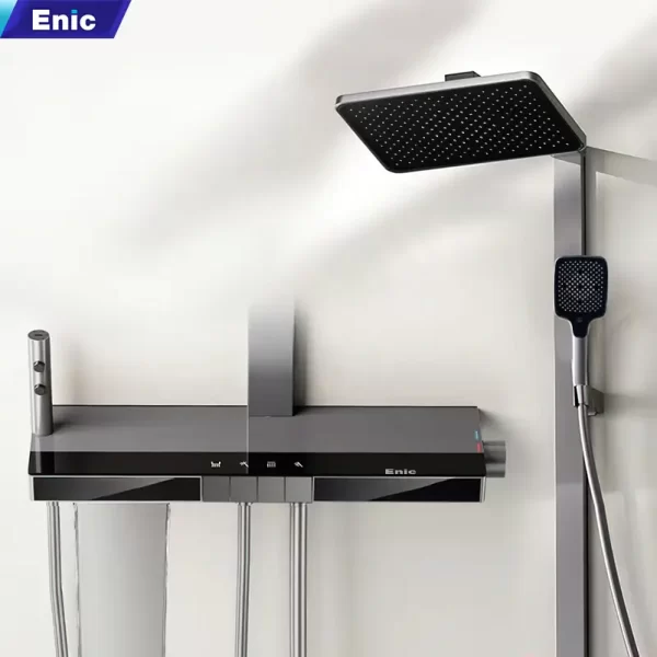 Mẫu Combo nhà tắm cao cấp Enic E7 – Có bồn tắm là lựa chọn cho những ai đang tìm kiếm một không gian phòng tắm sang trọng, chuẩn phong cách hiện đại. Thuộc phân khúc cao cấp, thiết kế combo này lấy cảm hứng từ phong cách châu Âu tối giản với sự phối hợp hài hòa giữa các tông màu trung tính đen – xám. Combo phù hợp với các căn hộ cao cấp, biệt thự hoặc nhà phố.