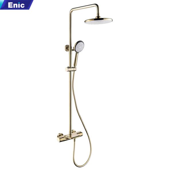 Không gian phòng tắm sẽ trở nên nổi bật với combo thiết bị vệ sinh Enic B4, là lựa chọn phù hợp cho những ai yêu thích sự đồng điệu về màu sắc và tính tiện dụng. Bộ sản phẩm mang tone vàng làm chủ đạo, tạo hiệu ứng thị giác ấm cúng, nhẹ nhàng nhưng không kém phần sang trọng. Bộ sản phẩm bao gồm: