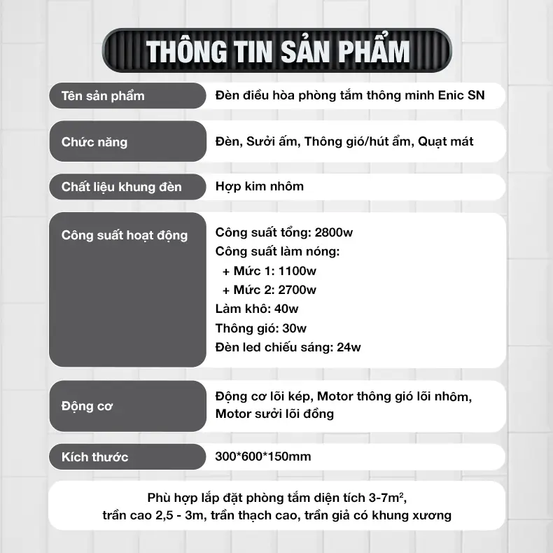 Đèn điều hòa phòng tắm cao cấp Enic SN
