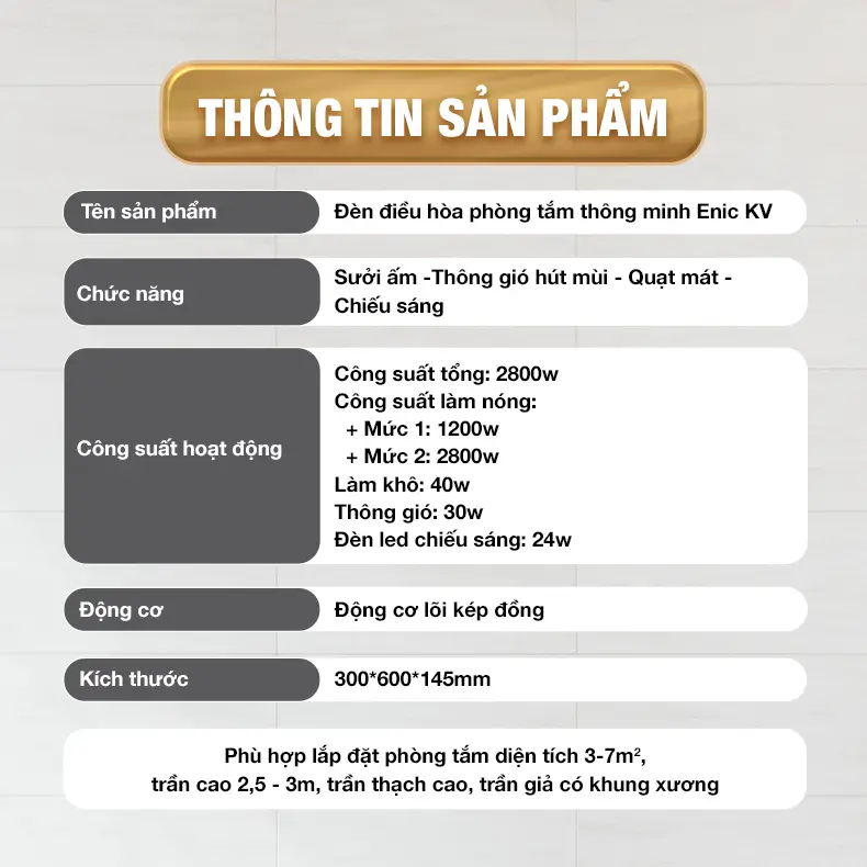 Video chi tiết sản phẩm Đèn điều hòa phòng tắm thông minh Enic KV