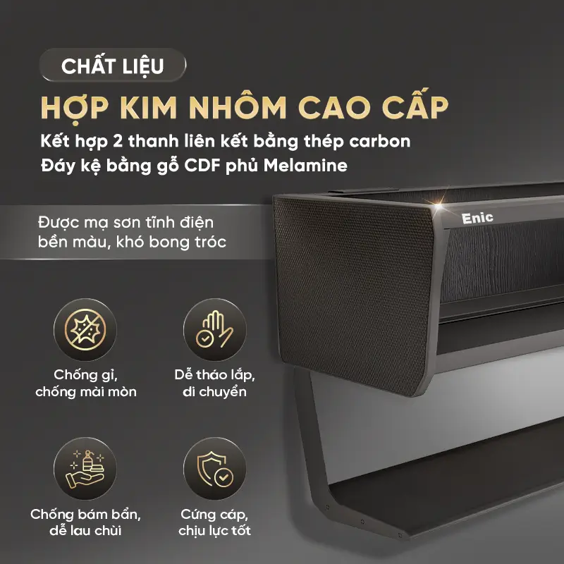 | Chất liệu | Hợp kim nhôm, Gỗ CDF, Thép carbon | Hợp kim nhôm, Gỗ CDF, Thép carbon |