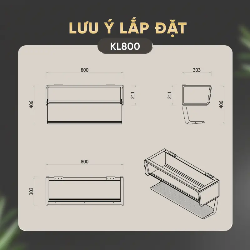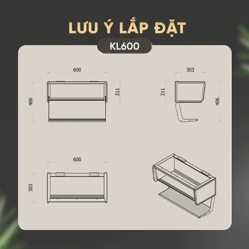 | Kích thước (DRC) | 600 * 303 * 211 mm | (Dành cho khoang tủ rộng 800mm) |