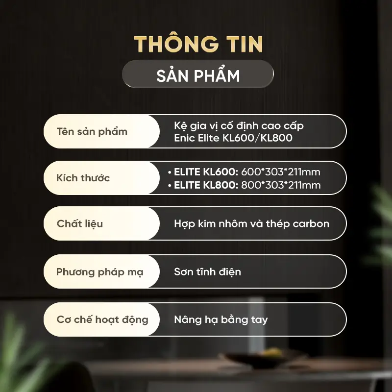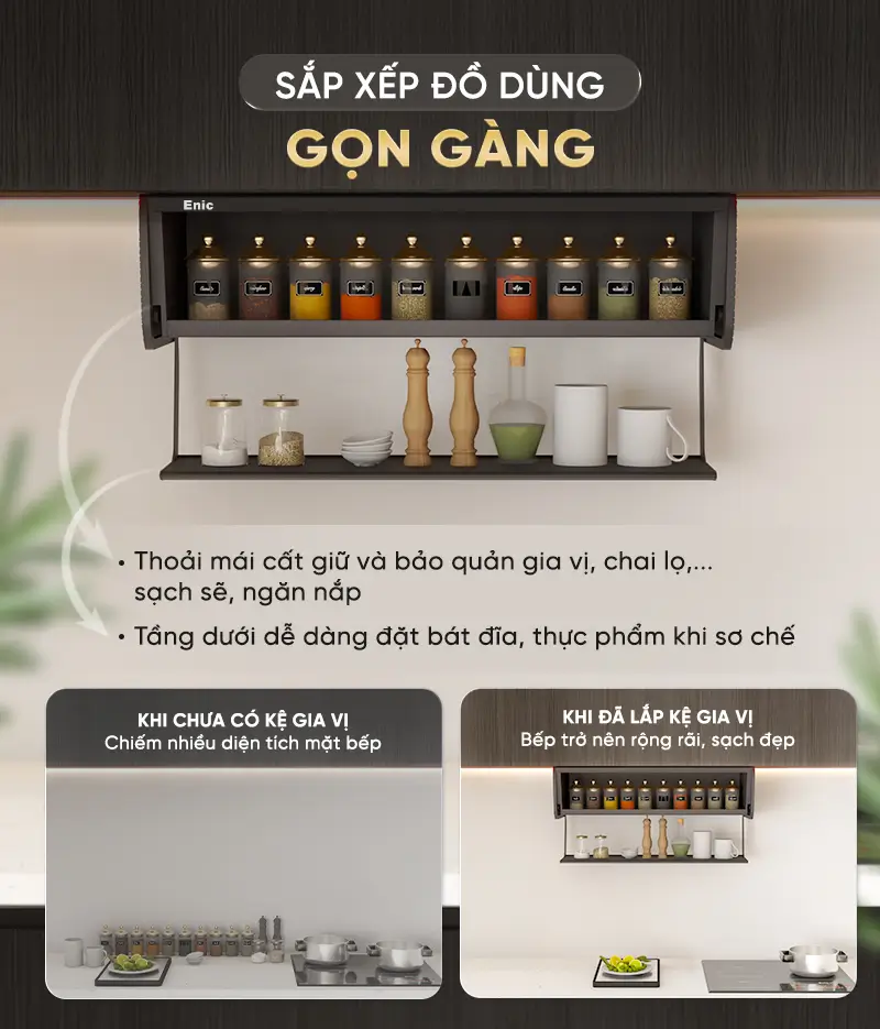 Kệ Gia Vị Cố Định Cao Cấp Enic Elite KL600/KL800