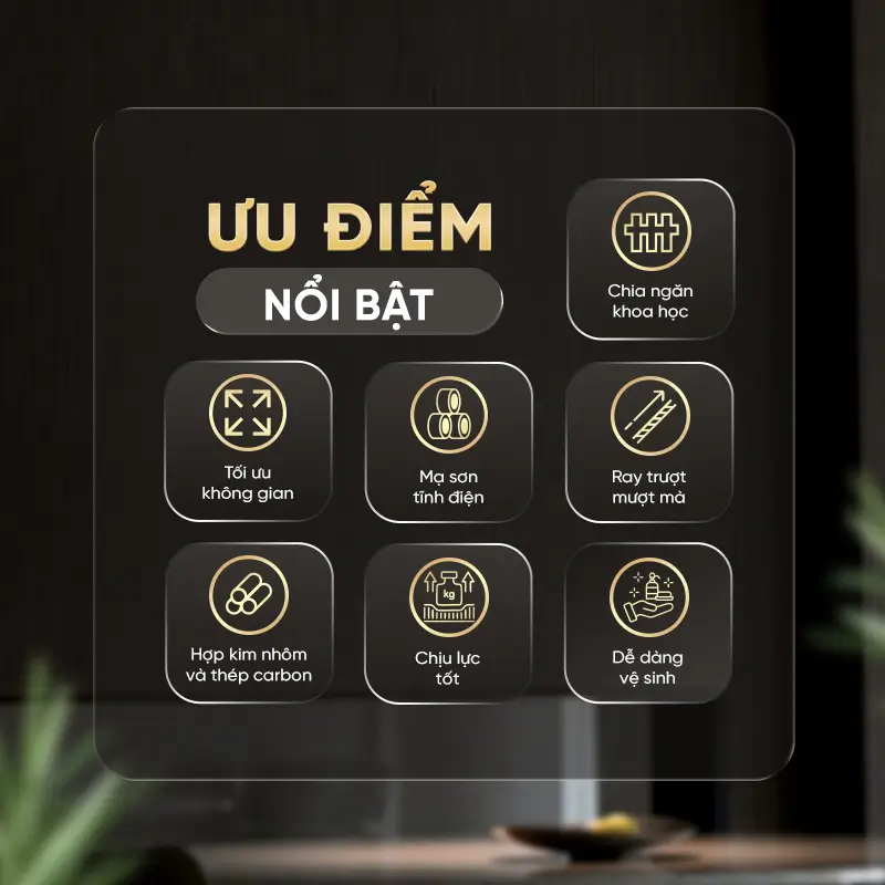 Lời khuyên: Dòng kệ cố định Elite cực kỳ phù hợp cho những hệ tủ bếp hiện đại, nơi gia chủ ưu tiên sự gọn gàng và muốn giấu các chai lọ gia vị vào bên trong để không gian bếp luôn thoáng đạt.
