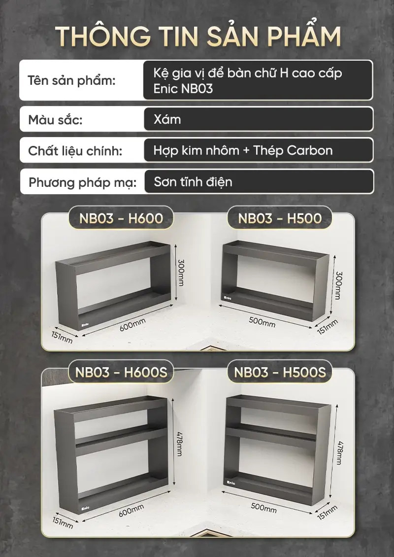 Kệ gia vị chữ H để bàn Enic NB03
