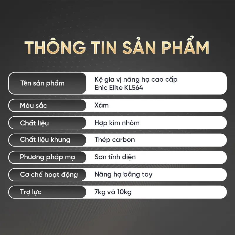 Kệ gia vị nâng hạ cao cấp Enic Elite KL564