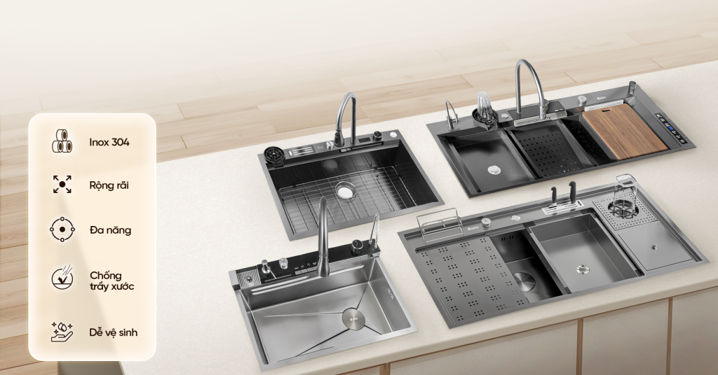 - Ưu tiên chất liệu inox 304: Nên chọn chất liệu inox 304 vì có khả năng chống gỉ tốt, bền bỉ và phù hợp với môi trường bếp thường xuyên ẩm ướt.