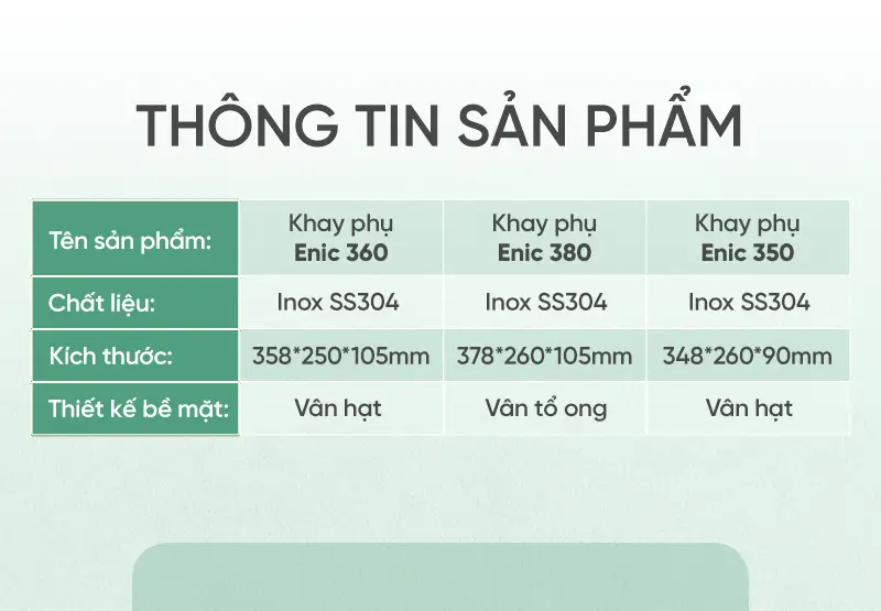 Tối ưu hóa quy trình sơ chế thực phẩm và nâng cao tiện ích cho căn bếp với Khay phụ bồn rửa chén Enic. Đây là một phụ kiện Thiết bị nhà bếp nhỏ gọn nhưng mang lại hiệu quả lớn, được thiết kế chuyên biệt để kết hợp hoàn hảo với các dòng bồn rửa chén của Enic, giúp không gian sơ chế luôn gọn gàng và vệ sinh.