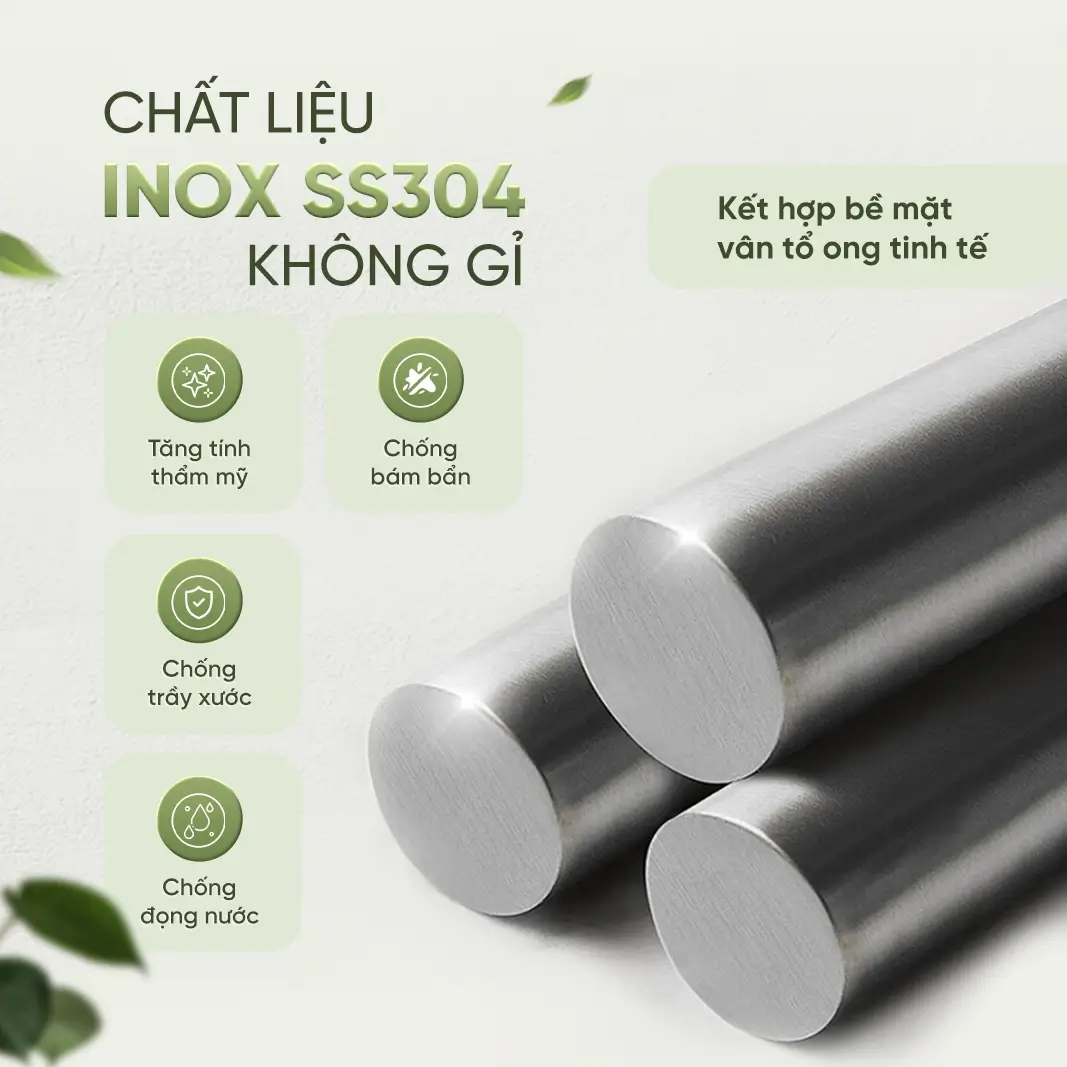 Ưu điểm nổi bật nhất của khay rửa rau Enic là chất liệu Inox SS304 cao cấp. Khác với các loại rổ nhựa truyền thống dễ bám bẩn hay nứt vỡ, chất liệu Inox này đảm bảo độ bền vượt trội, khả năng chống gỉ sét và ăn mòn tuyệt đối trong môi trường ẩm ướt. Bề mặt sáng bóng không chỉ giúp không gian bếp thêm sang trọng, dễ dàng vệ sinh mà còn đảm bảo an toàn vệ sinh thực phẩm tối đa khi tiếp xúc trực tiếp với rau củ, trái cây.