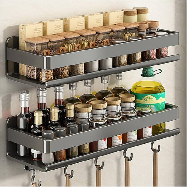 - Thuận tiện thao tác: Kệ có kích thước phù hợp (không quá sâu, không quá cao) sẽ giúp bạn dễ dàng lấy và cất chai lọ gia vị trong quá trình nấu nướng.