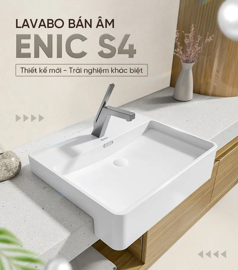 Nâng tầm không gian phòng tắm với Lavabo bán âm Enic S4 – dòng sản phẩm đột phá dành cho những gia chủ yêu thích sự phá cách và tối ưu hóa diện tích. Là một trong những mẫu Thiết bị vệ sinh chủ đạo của Enic, S4 mang đến một diện mạo hoàn toàn mới, kết hợp hoàn hảo giữa vẻ đẹp lộ diện của lavabo đặt bàn và sự gọn gàng của chậu âm bàn truyền thống.