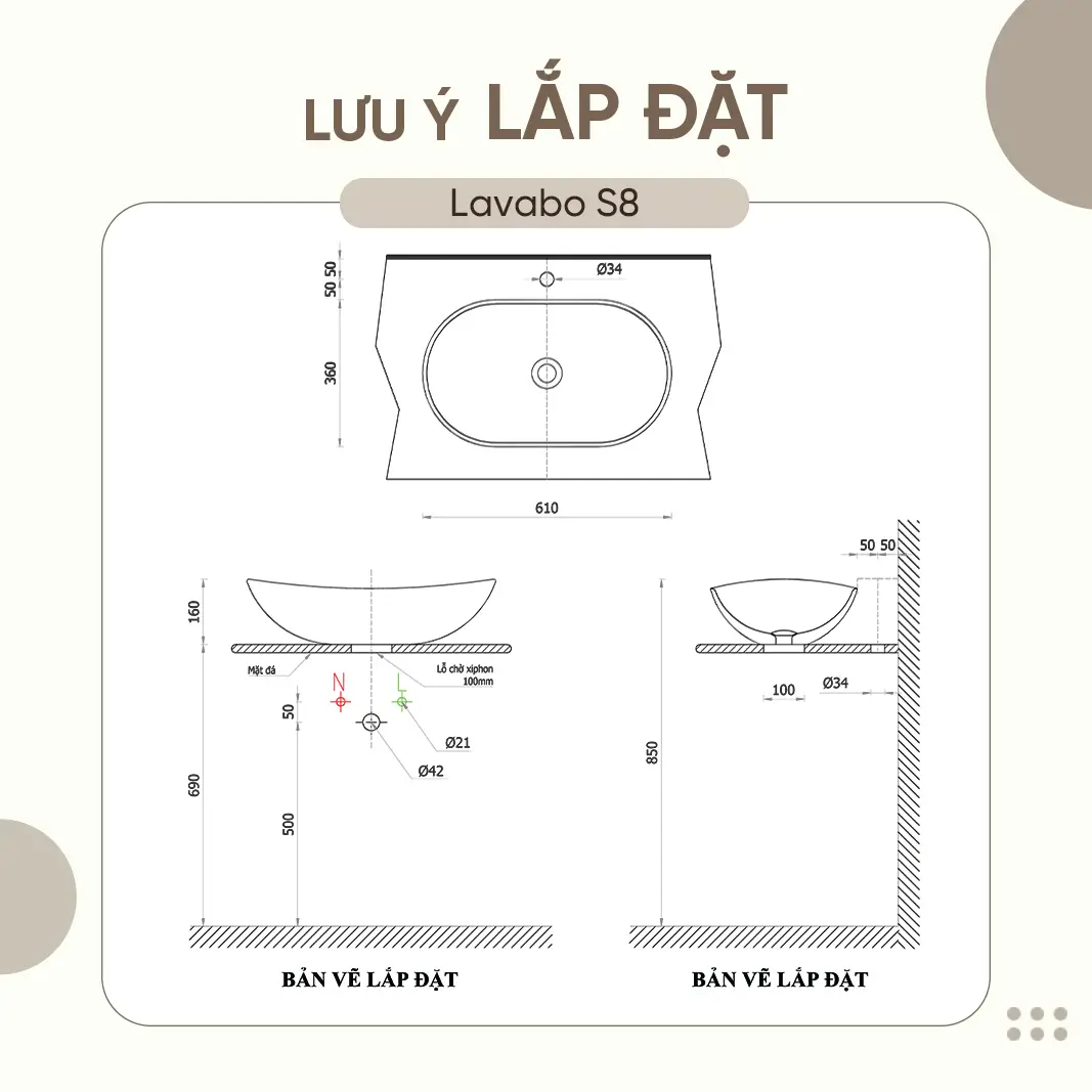 Thiết bị lavabo để bàn S8 hiện có một phiên bản, một màu nhiều ưu điểm như sau: