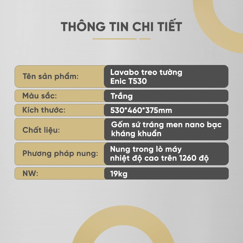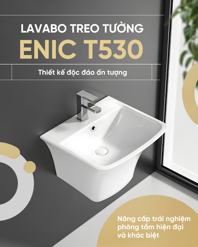 Lavabo treo tường Enic T530 được thiết kế để biến phòng tắm của bạn thành một không gian sống đẳng cấp, nơi mỗi chi tiết đều mang đến sự tiện nghi và cảm hứng.
