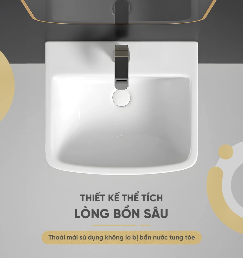 - Tính năng thông minh, trải nghiệm người dùng tối ưu: Lòng bồn sâu, giảm thiểu tình trạng bắn nước, tạo sự thoải mái khi sử dụng. Khả năng chịu lực tốt, đảm bảo an toàn và ổn định. Dễ dàng vệ sinh, tiết kiệm thời gian và công sức.