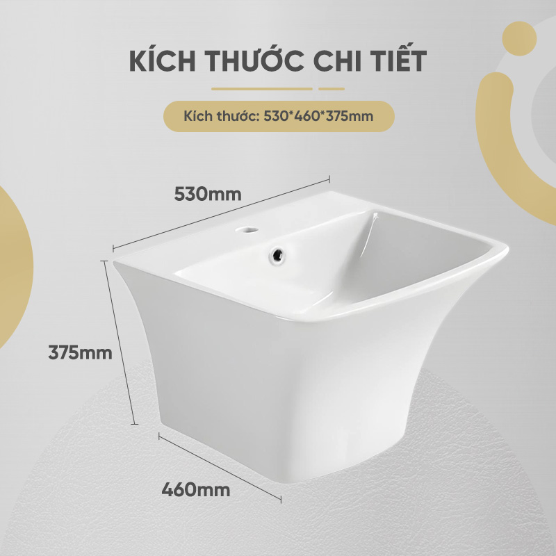- Thiết kế treo tường tinh tế, tối ưu không gian: Tạo không gian rộng rãi, thoáng đãng, mang đến cảm giác thoải mái và thư thái. Kích thước 530 x 460 x 375mm, phù hợp với nhiều phong cách và diện tích phòng tắm.