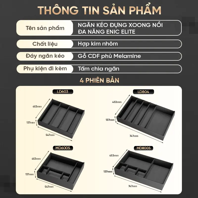 Ngăn kéo đựng xoong nồi đa năng Enic Elite