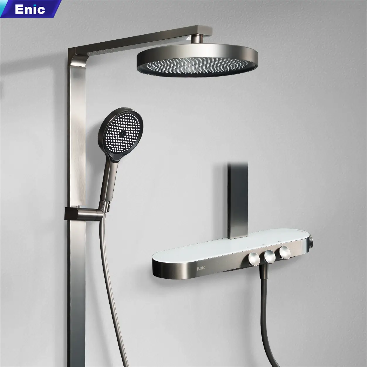 Sen cây tắm cao cấp Enic MD05 là dòng thiết bị vệ sinh nổi bật với bảng điều khiển sen tắm phím đàn độc đáo, thiết kế lấy cảm hứng từ các phím nhấn piano sang trọng giúp thao tác trực quan và chính xác. Kết hợp cùng bát sen lớn phun mưa rộng và tay sen 4 chế độ linh hoạt, đây là lựa chọn hoàn hảo để nâng tầm trải nghiệm tắm cho toàn bộ gia đình.