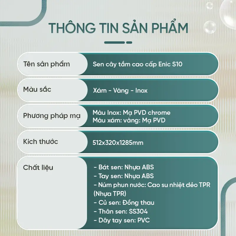 Chọn sen cây tắm Enic S10 để việc tắm trở nên dễ dàng và thoải mái hơn. Đặt hàng ngay để trải nghiệm sự tiện lợi mỗi ngày bạn nhé!