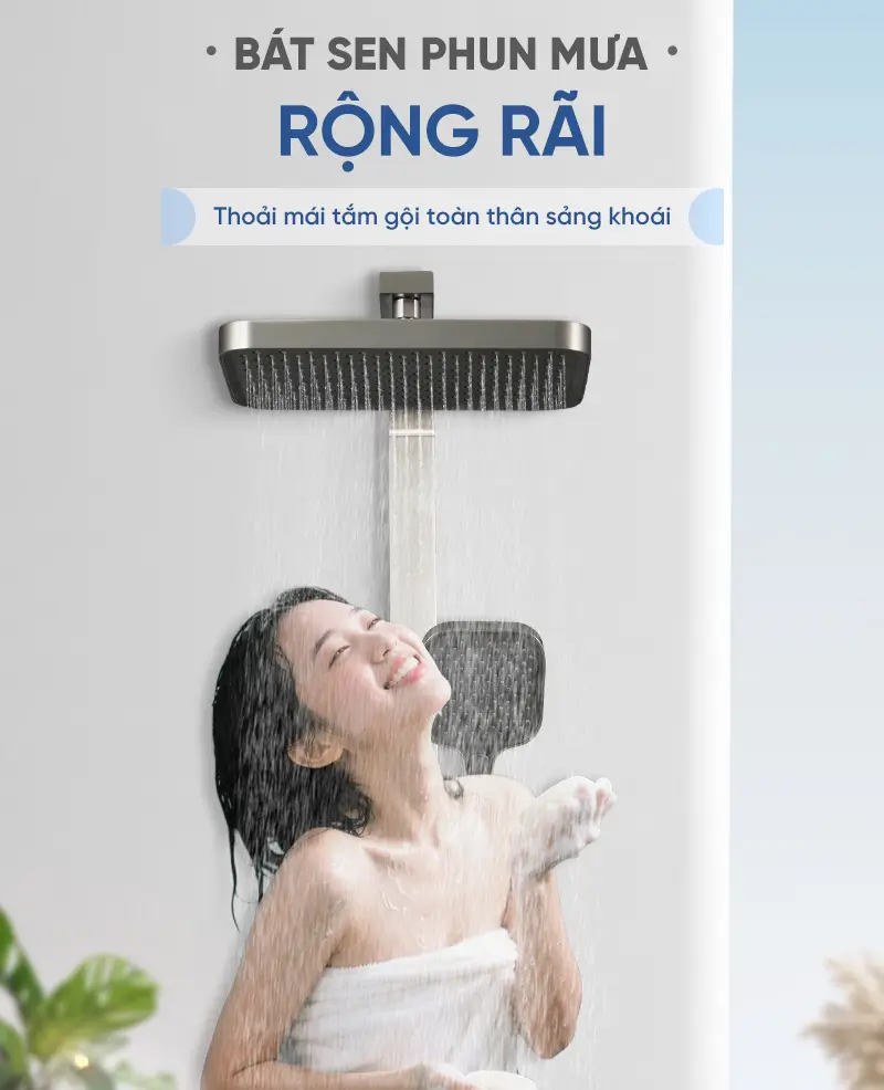 Bát sen ở trên to lắm mn ơi, tia nước xuống đều tăm tắp luôn ấy, đứng ở dưới xả nước xuống là ướt cả người chứ khỏi cần xoay qua xoay lại luoon