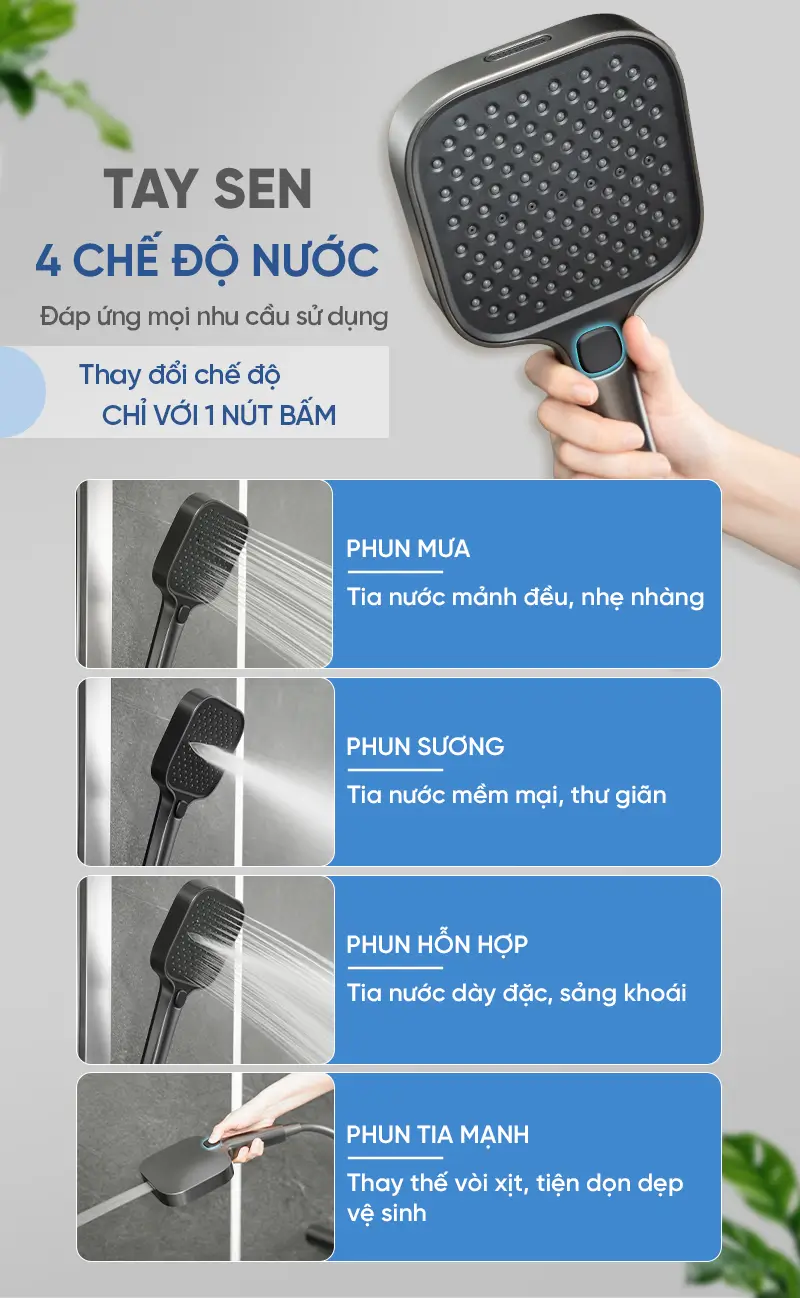 đúng là cái sen xịn thì mê tắm hơn thiệt các bác ạ, trước nhà e dùng sen loại thường, giờ mới sửa phòng tắm lại nên mua luôn con sen tốt tốt xíu, cây sen có 4 chế độ nước, chắc mỗi ngày e tắm 3 lần đấy, còn 1 chế độ e k tắm là tại vì dạng vòi xịt mạnh thôi