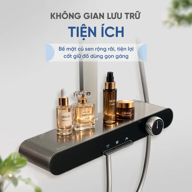 Chỗ vòi nước của cây sen để thêm sửa tắm dầu gội đc í mn, Lắp lên thấy nó rộng rãi nên mình để vài chai hay dùng thường lên cho tiện xài lun