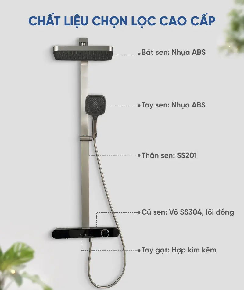 cầm sen lên tắm thấy khá là chắc nha, k bị tặng mà cũng k bị nhẹ tênh lỏng lẽo. tới nay 5 tháng rồi mà chỉ lau sơ qua là sạch, k thấy mấy vết cặn sét cứng nào