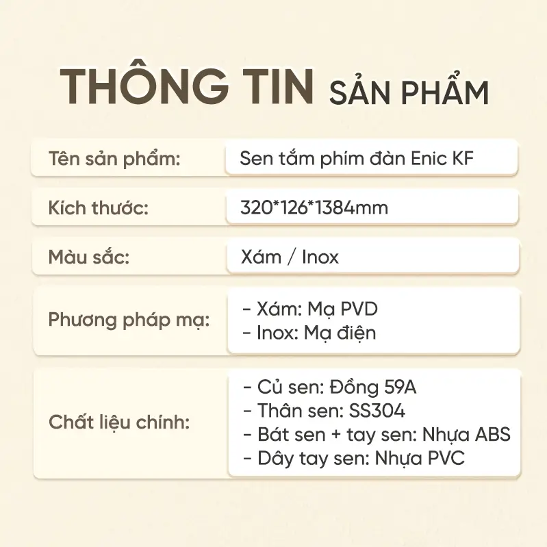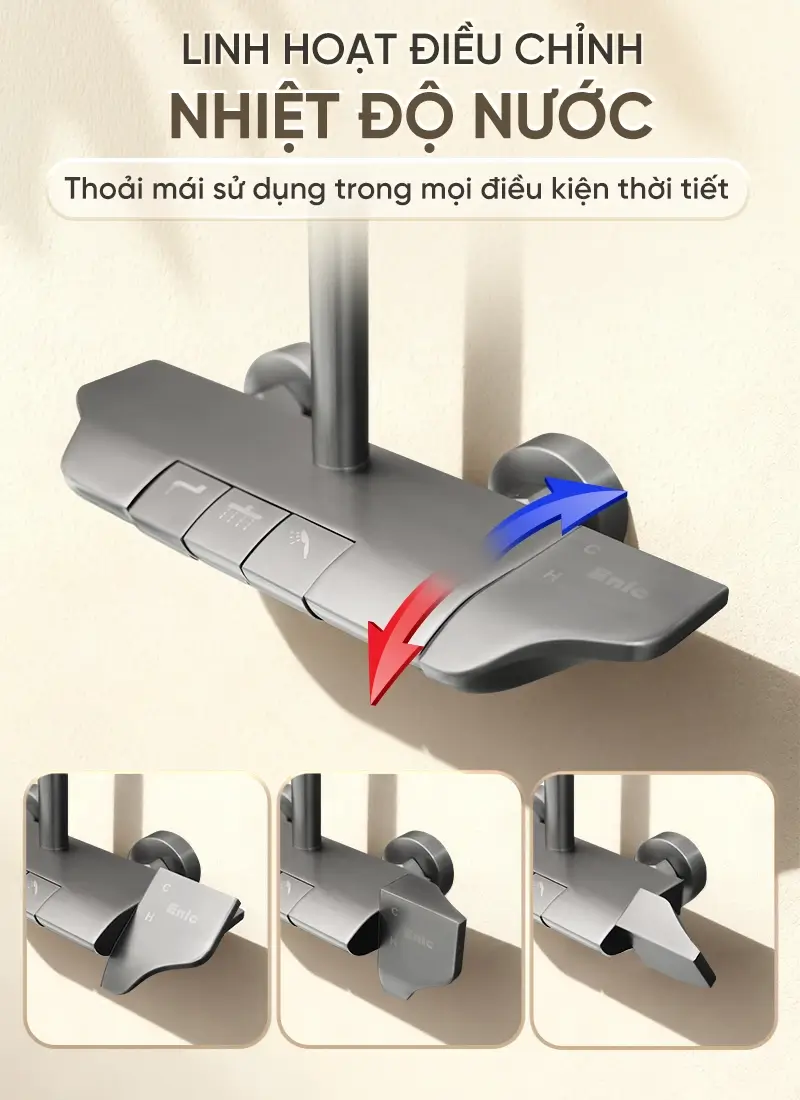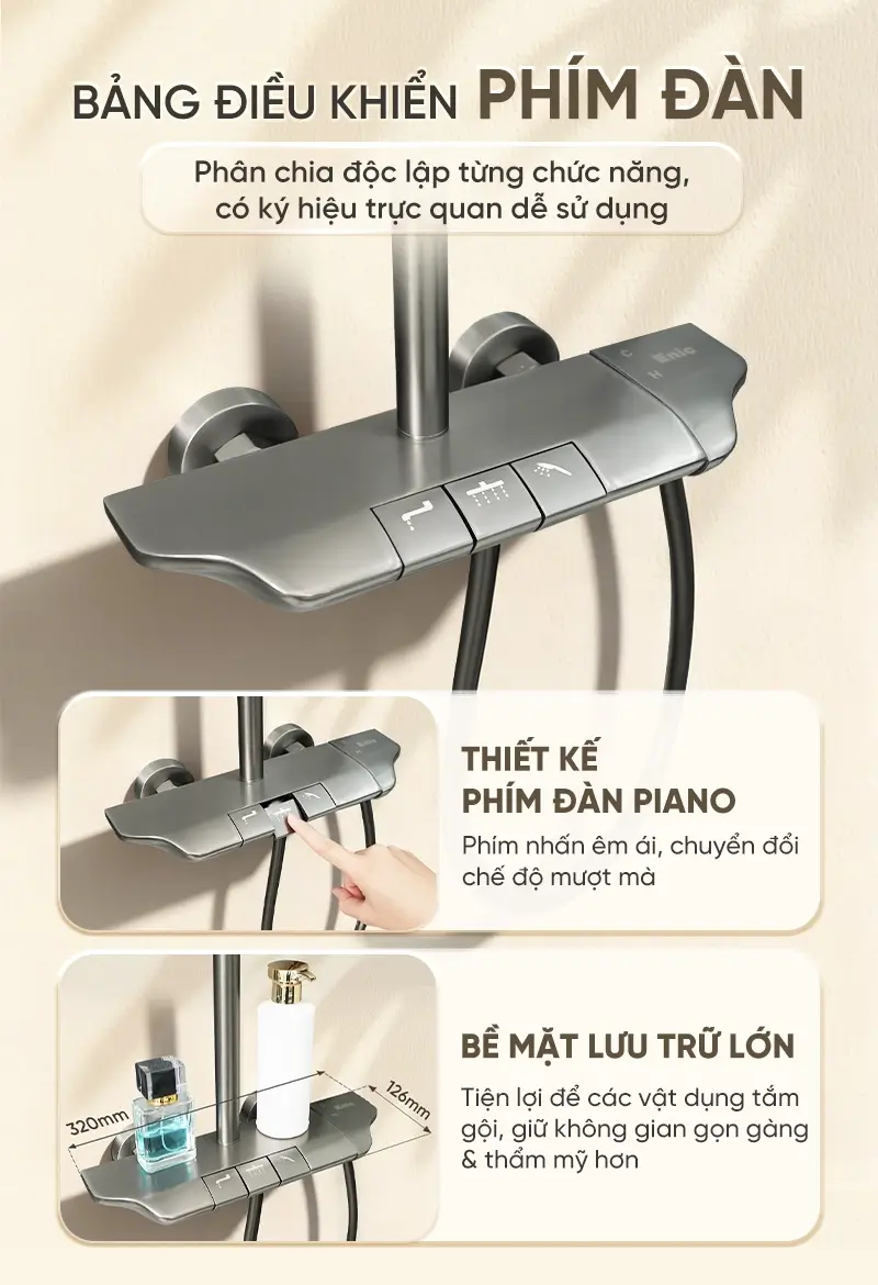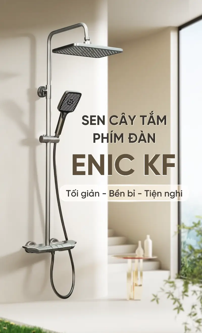Mang vẻ đẹp hiện đại và sự tiện nghi vượt bậc vào không gian sống của bạn với Sen cây tắm phím đàn Enic KF. Đây là dòng Thiết bị vệ sinh thế hệ mới, nổi bật với thiết kế bảng điều khiển dạng phím đàn piano độc đáo, giúp việc chuyển đổi các chế độ tắm trở nên trực quan và dễ dàng hơn bao giờ hết.