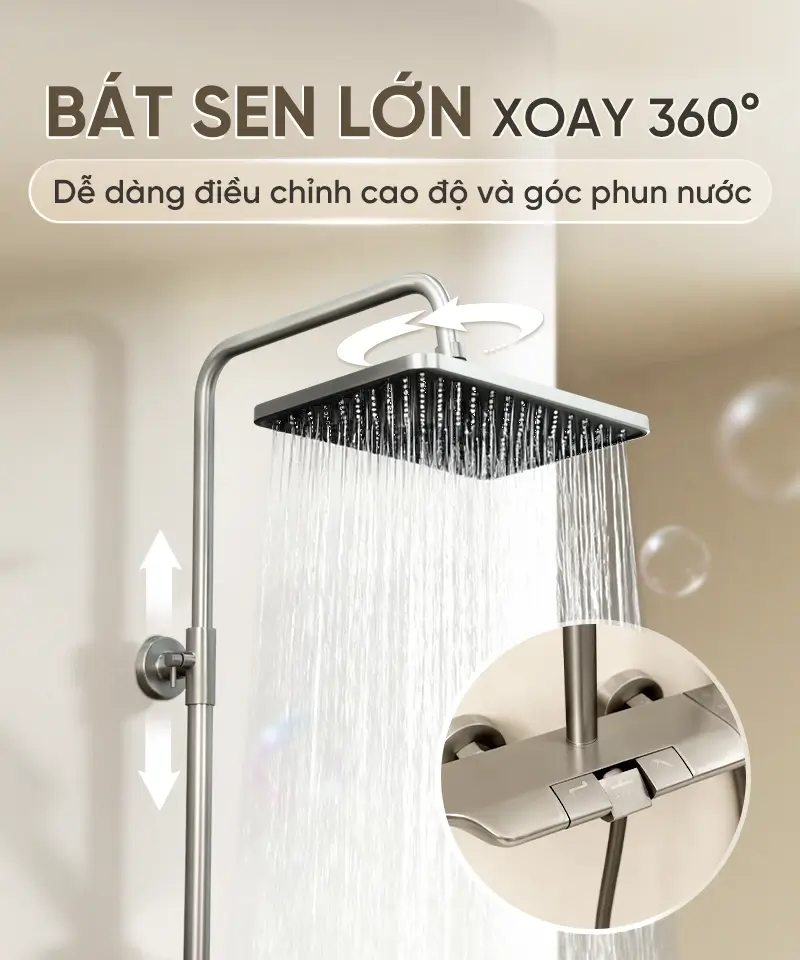 Bát sen lớn có khả năng xoay 360 độ, tỏa nước rộng khắp cơ thể.