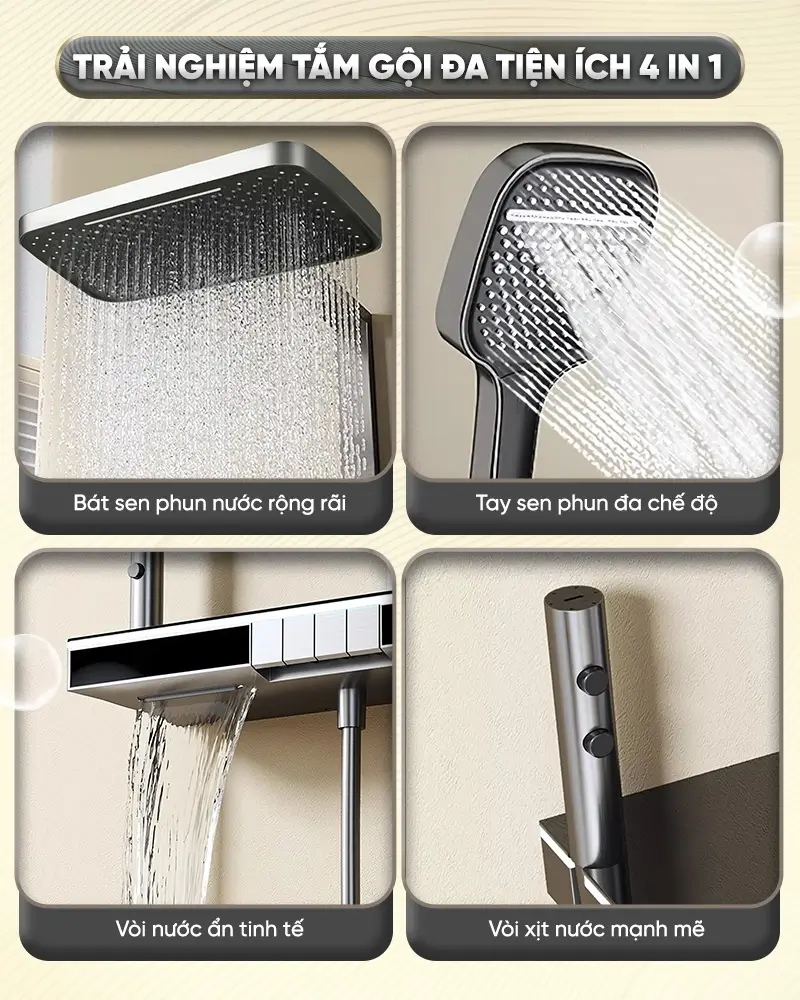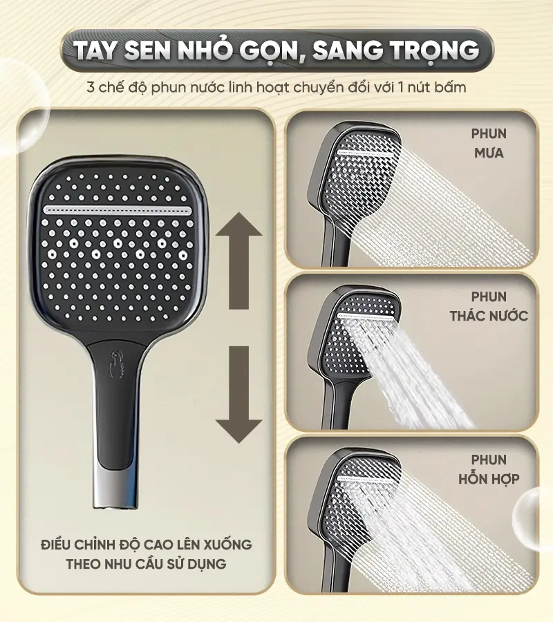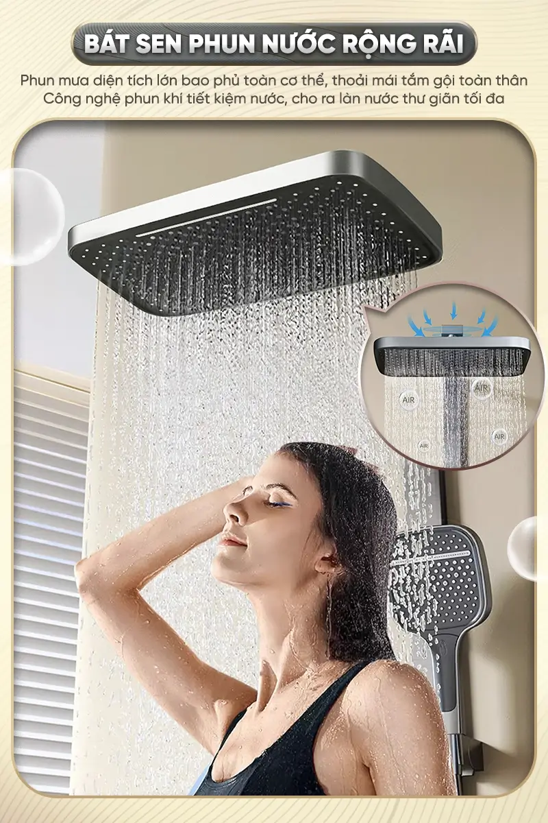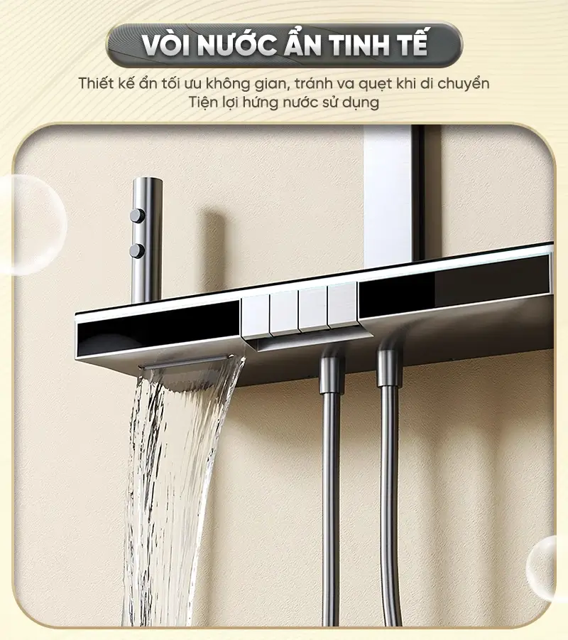 Điểm đặc biệt của TD40 chính là bát sen lớn có thể xoay 360 độ, giúp nước phân bổ đồng đều. Tay sen 3 chế độ cùng vòi xịt 2 chế độ, cho phép bạn linh hoạt điều chỉnh theo ý thích . Đặc biệt, vòi thác nước ẩn không chỉ giúp tối ưu không gian mà còn mang đến dòng nước mạnh mẽ vừa phải.