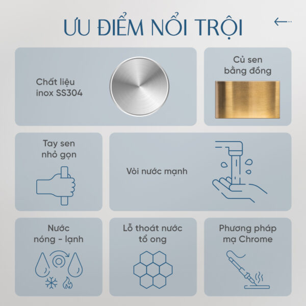 Với sự kết hợp giữa độ bền, tính tiện lợi và thiết kế sang trọng, Sen gật gù cao cấp Enic Y20 không chỉ là một thiết bị phục vụ nhu cầu tắm rửa hàng ngày mà còn là điểm nhấn thẩm mỹ, giúp không gian phòng tắm trở nên đẳng cấp hơn.