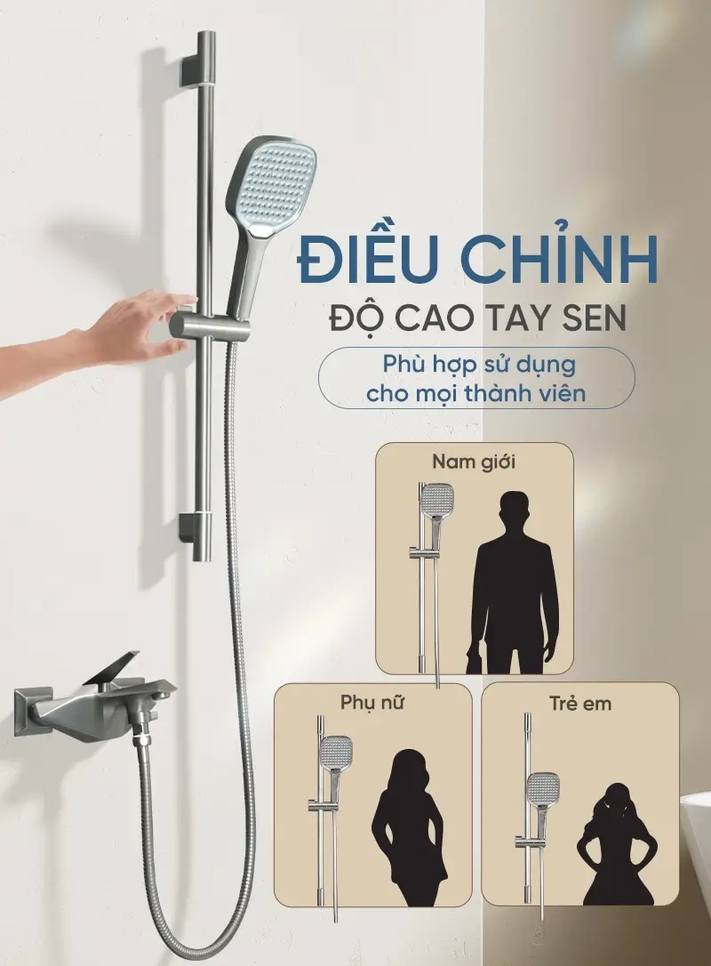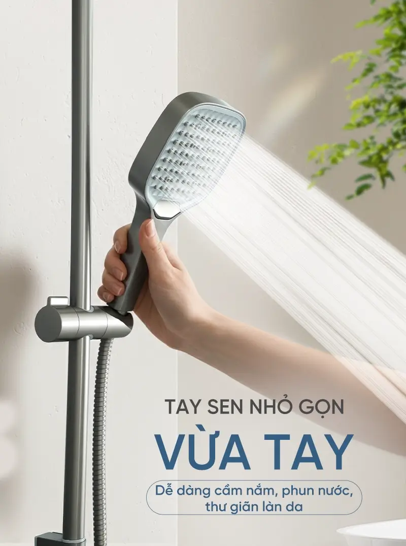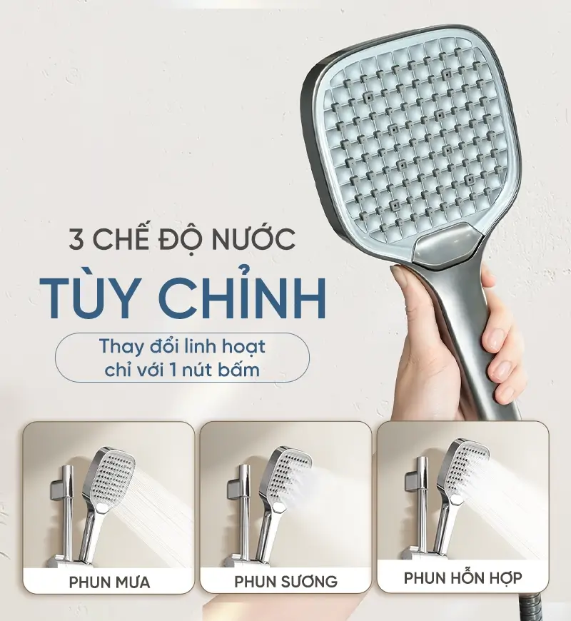 Tia nước dễ chịu cực, không bị bắn lung tun, tia mỏng vẫn đủ độ phủ để tắm, còn chuyển qua tia nước dày cũng kHông bị rát da nha. Tui hay dùng tia mỏng để tắm buổi tối, thấy thư giãn hơn