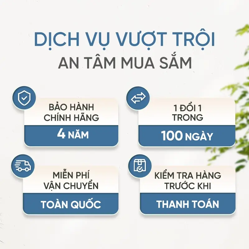 bảo hành đc tới 4 năm tốt quá, chứng tỏ hãng xài vật liệu xịn nè, chứ mấy chỗ bảo hành vài tháng thì hơi lo nha