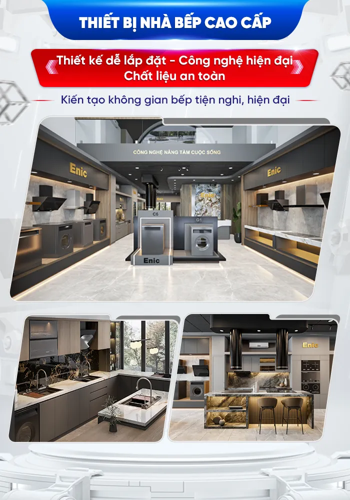 Đi cùng định hướng với các sản phẩm thiết bị vệ sinh, Enic vẫn tiếp tục cung cấp những sản phẩm thông minh. Nhằm mang lại sự tiện lợi, tối ưu hóa thời gian công sức của người tiêu dùng. Sản phẩm bếp Enic là những thiết bị nhà bếp cao cấp từ thiết kế cho đến tính năng.