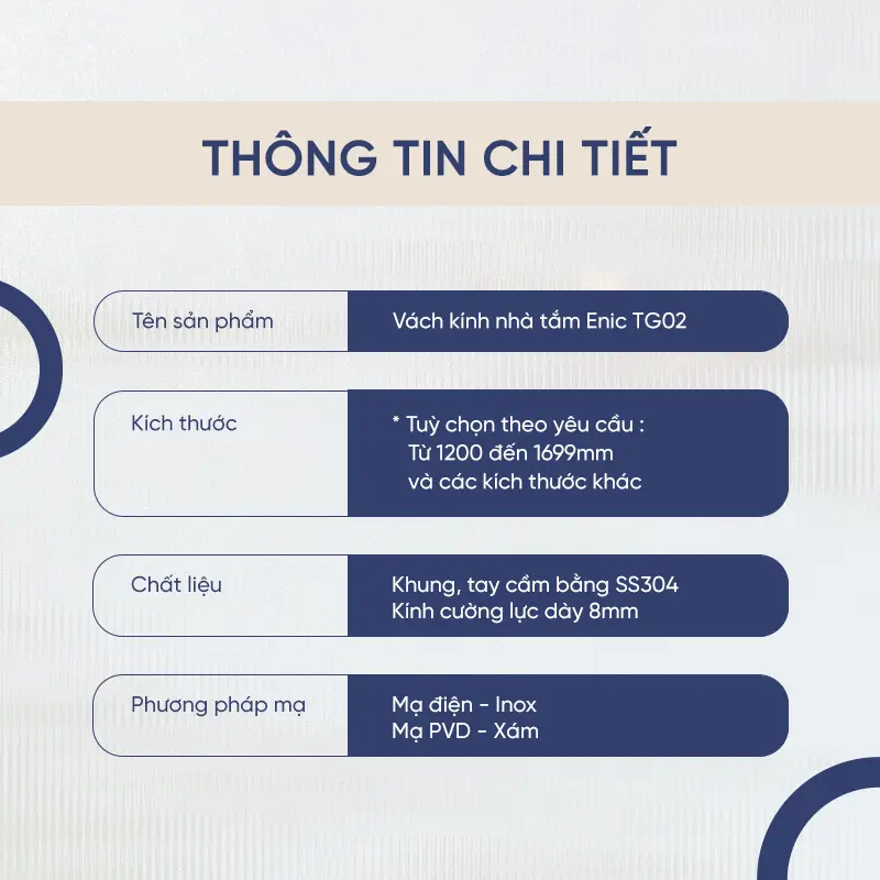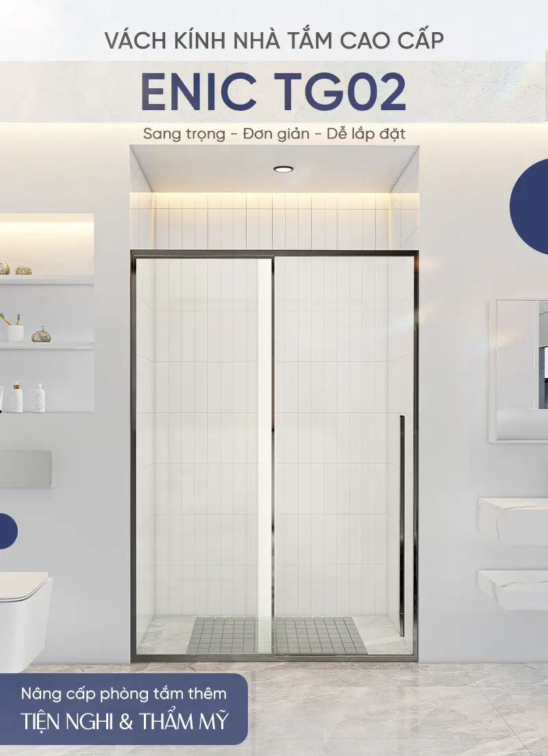 Khám phá sự khác biệt trong từng chi tiết với vách kính nhà tắm cửa lùa TG02 từ Enic, cho phòng tắm tiện nghi và đậm chất riêng.
