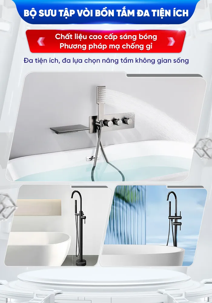 Vòi bồn tắm hay còn gọi là vòi sen tắm, vòi xả bồn tắm là phụ kiện nhà tắm dùng để cung cấp nước cho bồn tắm. Thông thường, loại vòi này được thiết kế đặt sàn, âm tường bao gồm 1 vòi cấp nước và 1 tay sen.