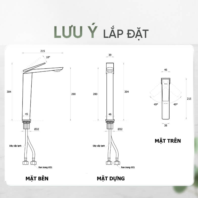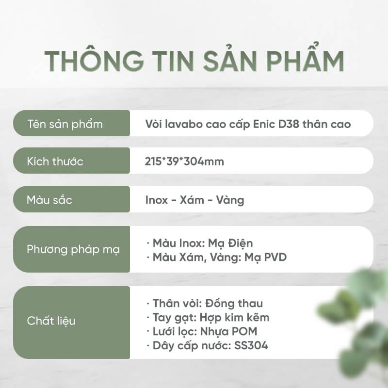 Vòi lavabo cao cấp Enic D38 – Thân cao