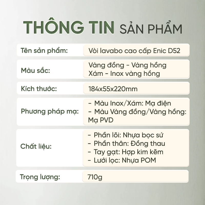Đặt hàng Vòi lavabo cao cấp Enic D52