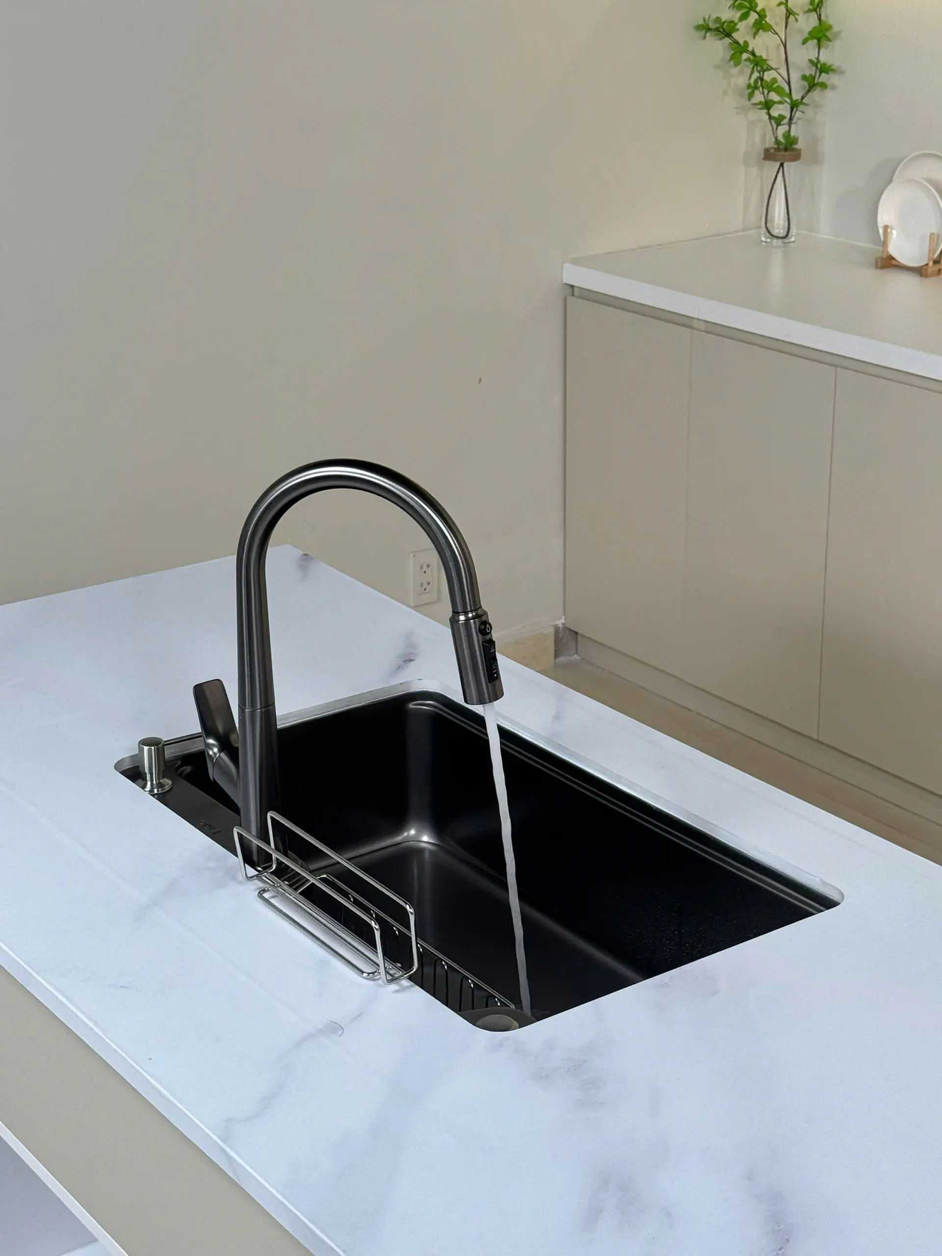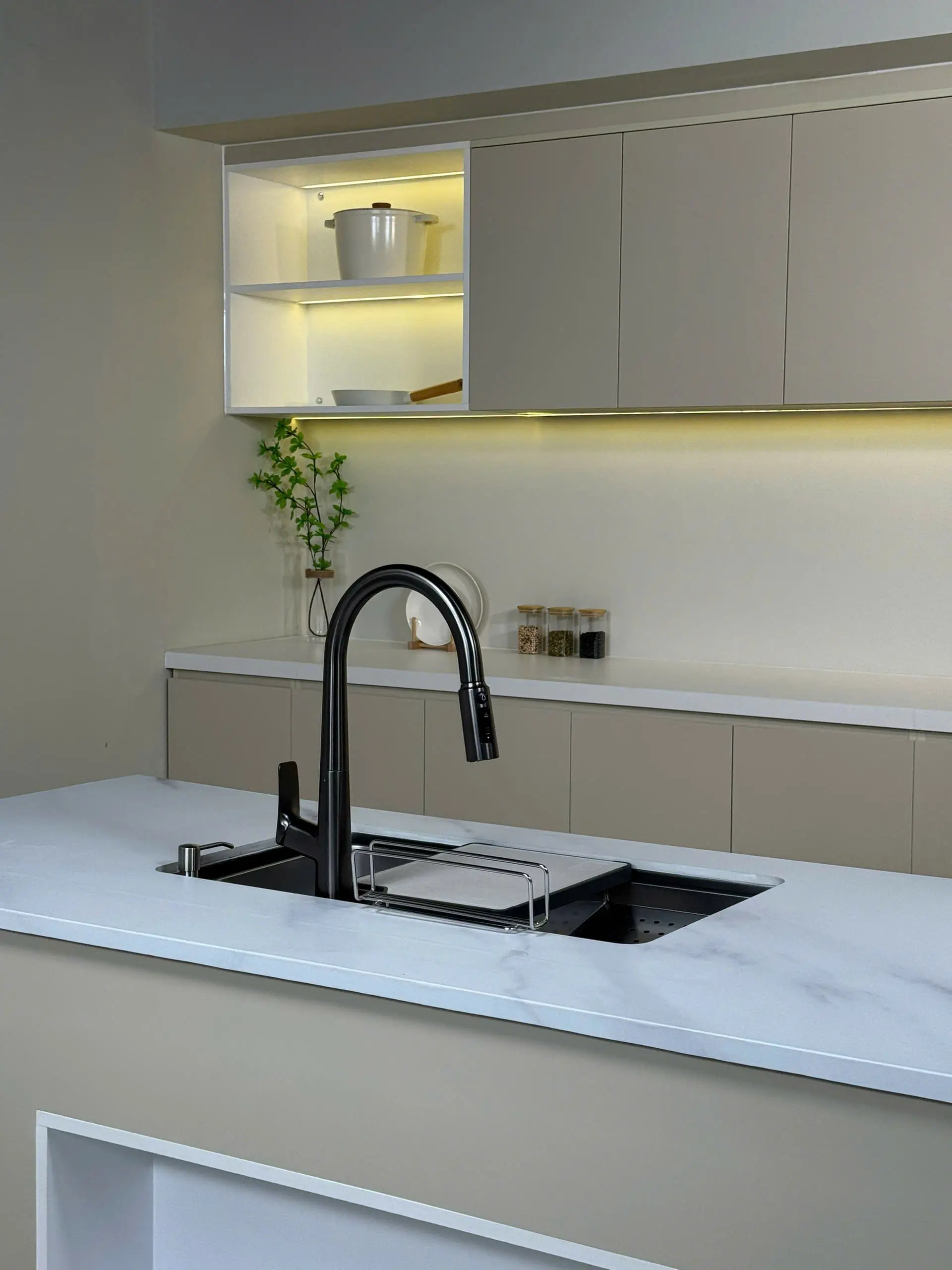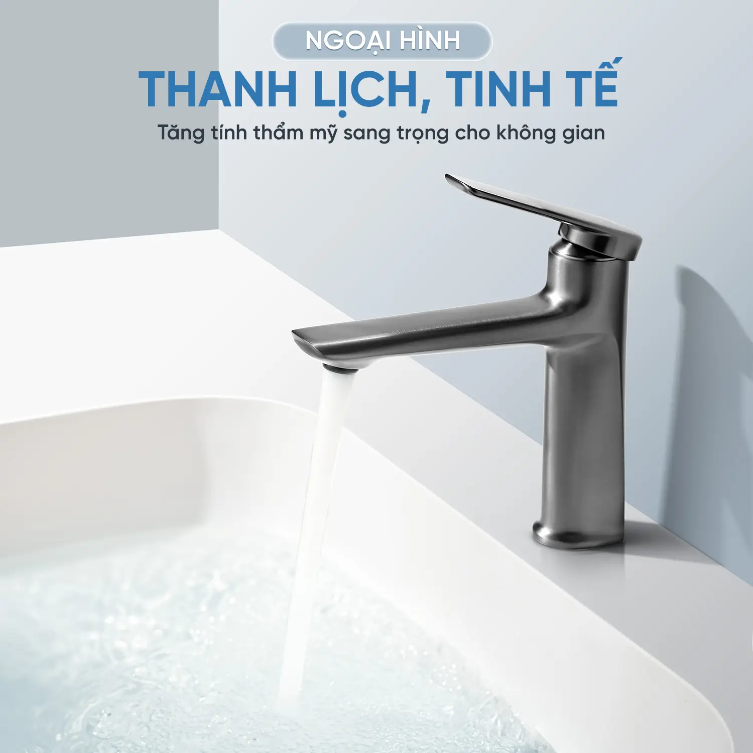 lavabo nhà mình nhỏ, hên sao có cái vòi thân thấp vầy nên mới cân đối, chứ lắp vòi bình thường nhìn kì lắm